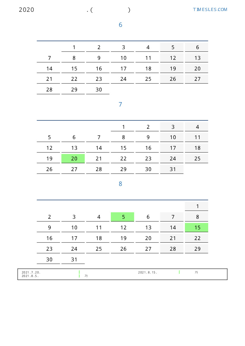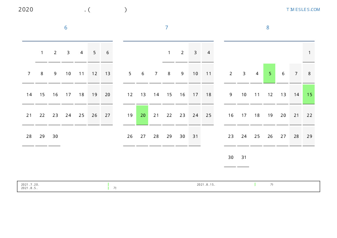 연휴가있는 계절별 세로 달력