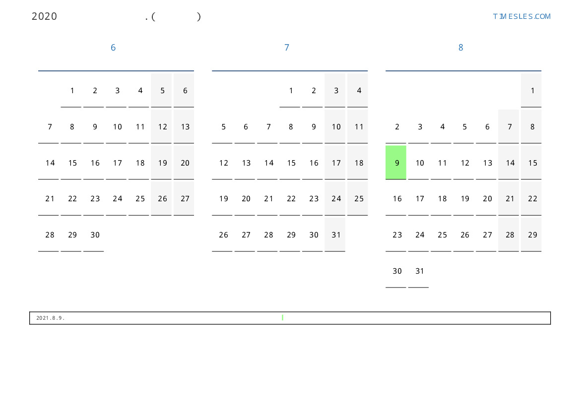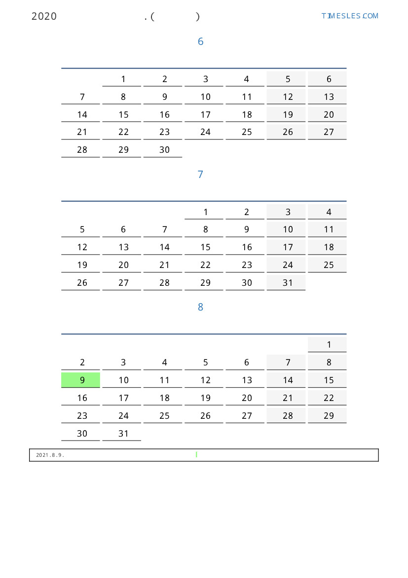 에콰도르 2021 년 여름 동안 공휴일 및 주말이 포함 된 PDF 캘린더 다운로드 및 인쇄