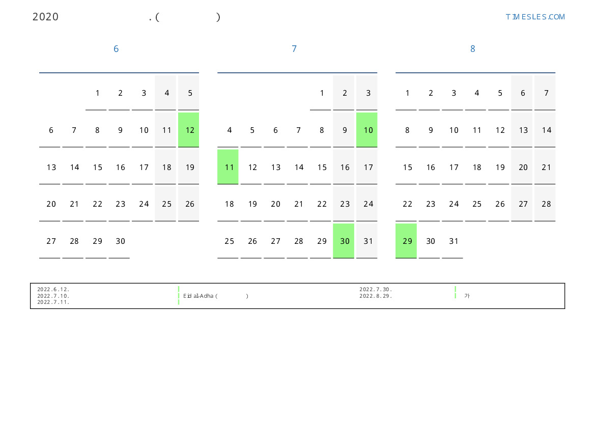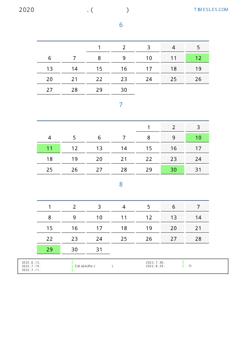 필리핀 2022 년 여름 동안 공휴일 및 주말이 포함 된 PDF 캘린더 다운로드 및 인쇄