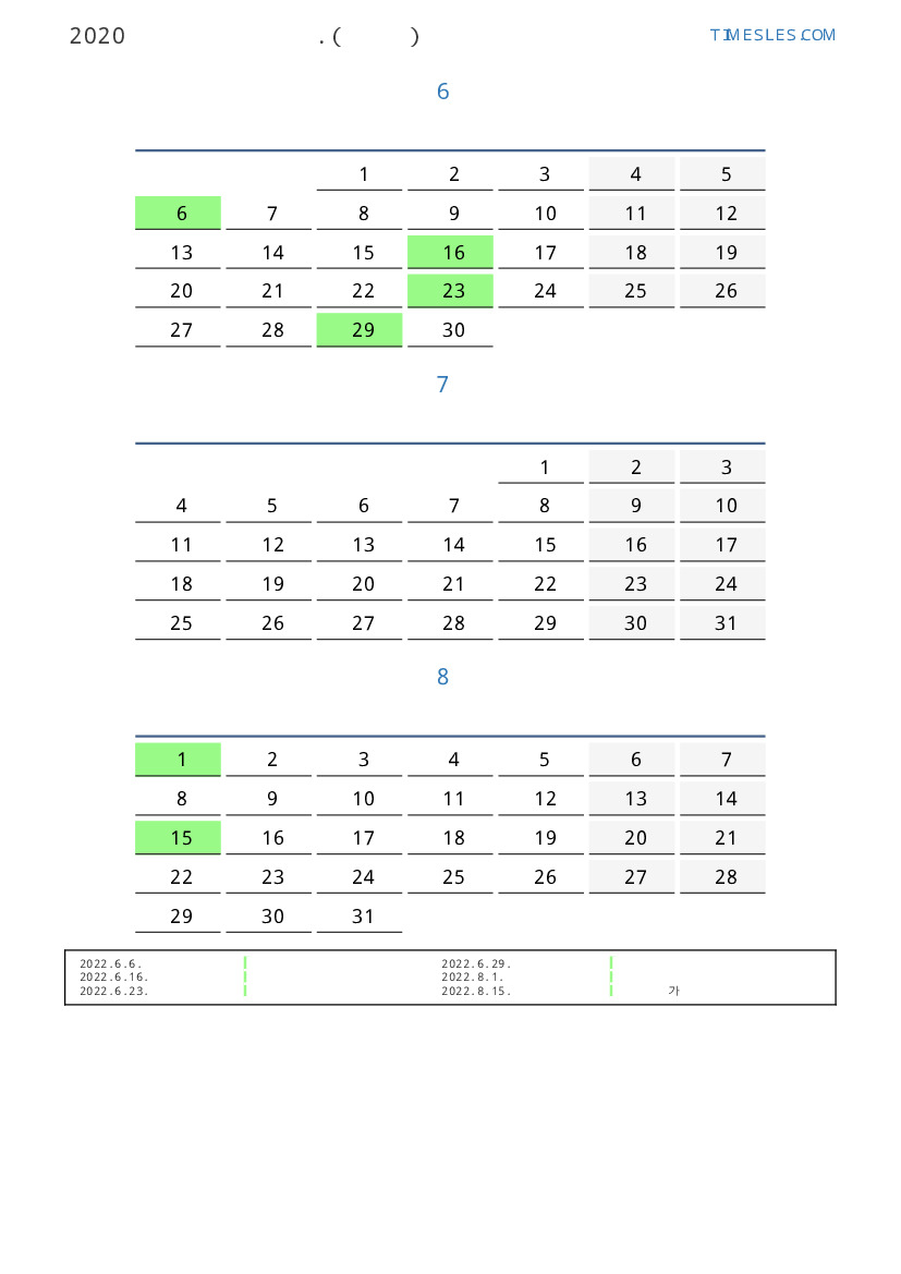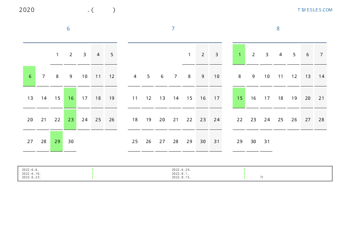 연휴가있는 계절별 세로 달력