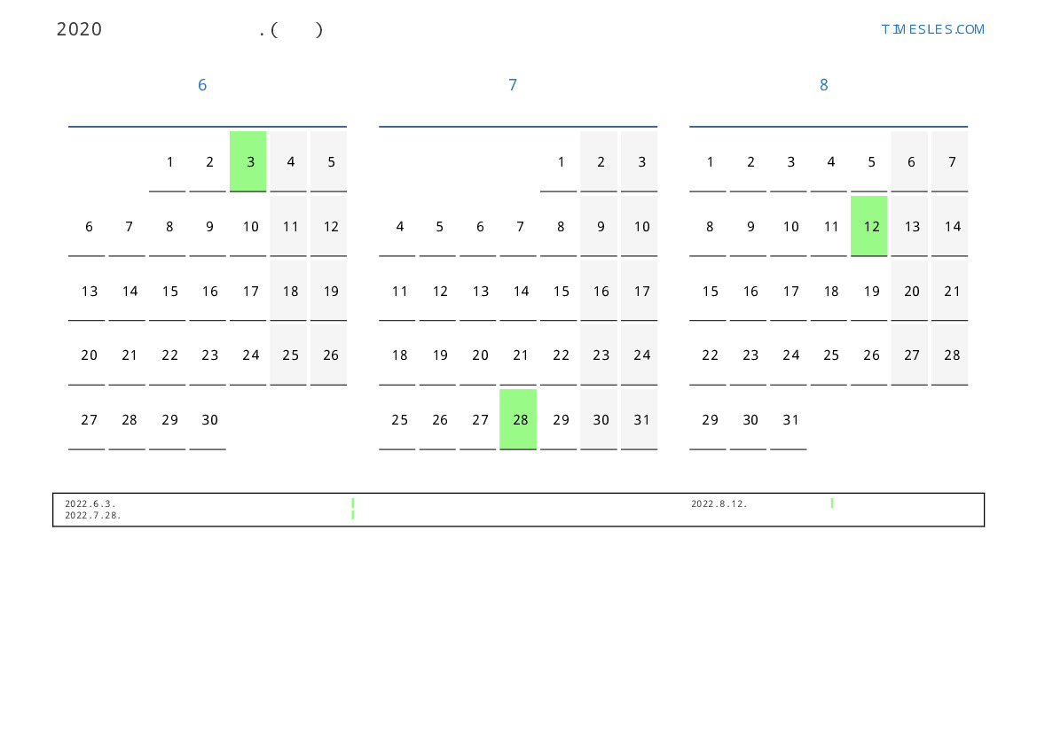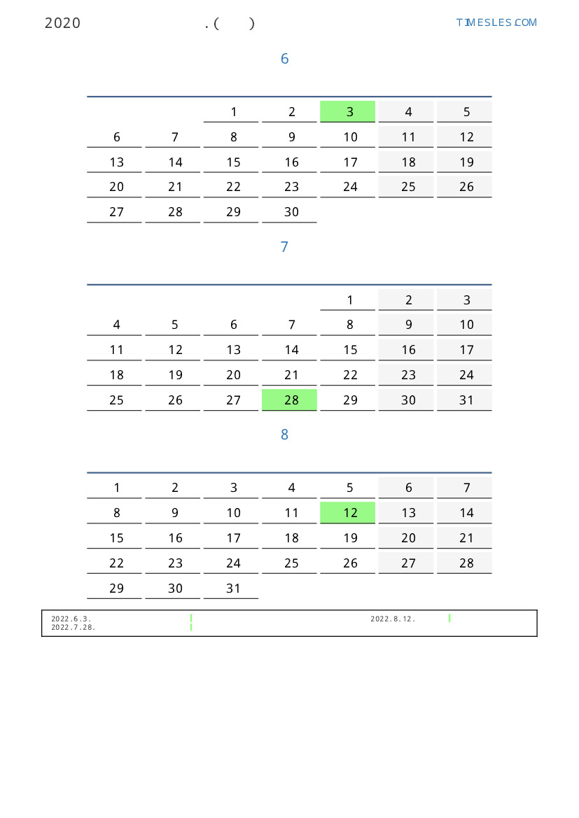태국 2022 년 여름 동안 공휴일 및 주말이 포함 된 PDF 캘린더 다운로드 및 인쇄