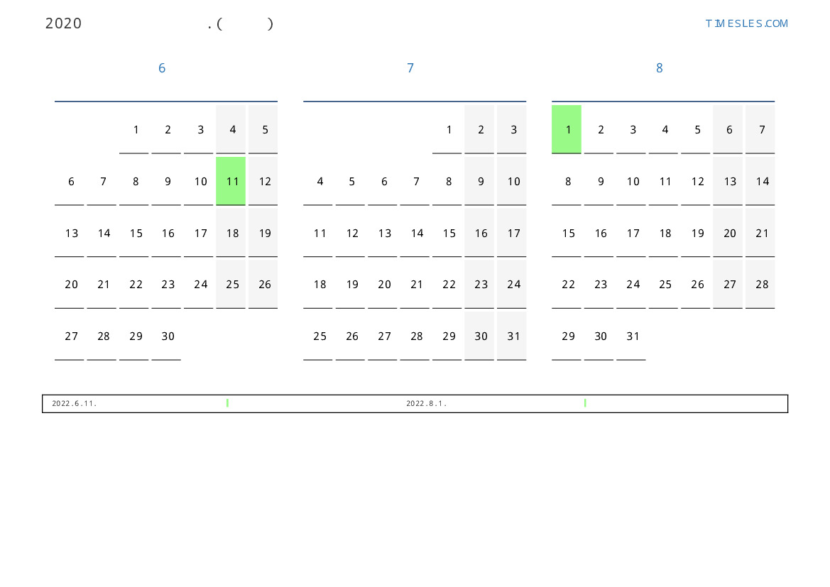 투발루 2022 년 여름 동안 공휴일 및 주말이 포함 된 PDF 캘린더 다운로드 및 인쇄