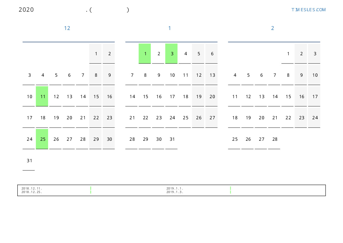 부르 키나 파소 2019 년 겨울 동안 공휴일 및 주말이 포함 된 PDF 캘린더 다운로드 및 인쇄