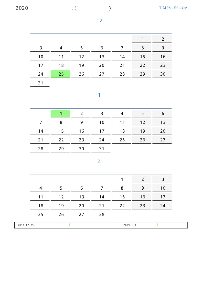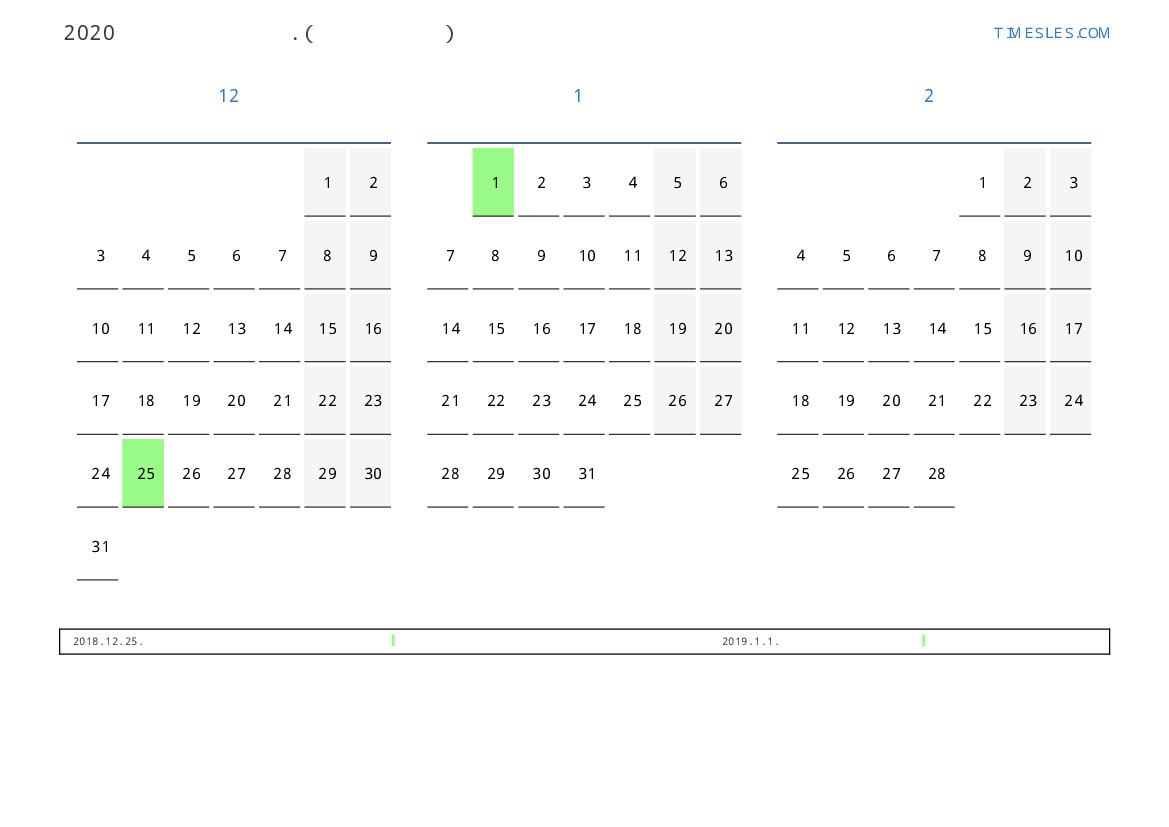코트 디부 아르 2019 년 겨울 동안 공휴일 및 주말이 포함 된 PDF 캘린더 다운로드 및 인쇄