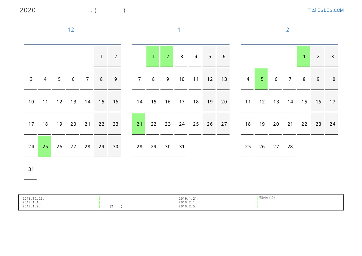 모리셔스 2019 년 겨울 동안 공휴일 및 주말이 포함 된 PDF 캘린더 다운로드 및 인쇄