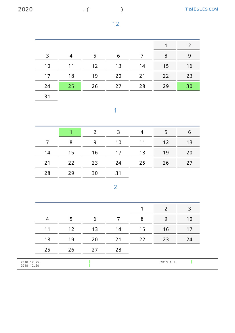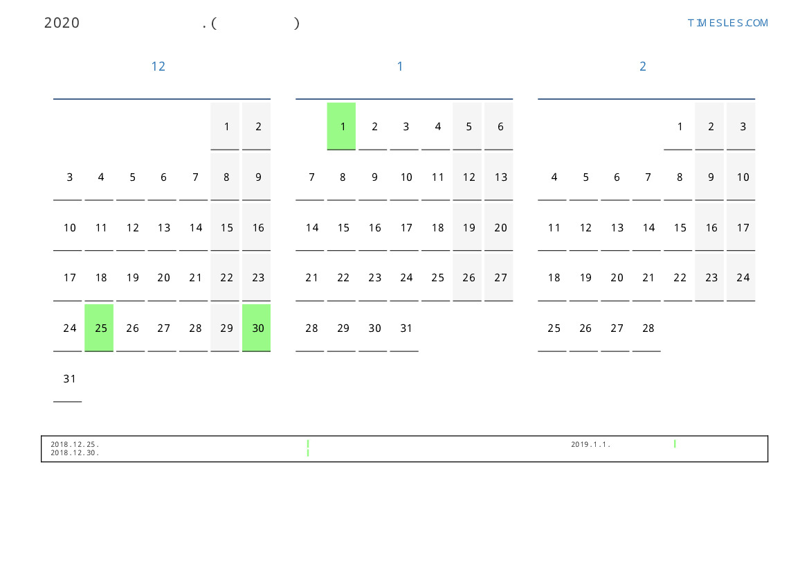 필리핀 2019 년 겨울 동안 공휴일 및 주말이 포함 된 PDF 캘린더 다운로드 및 인쇄