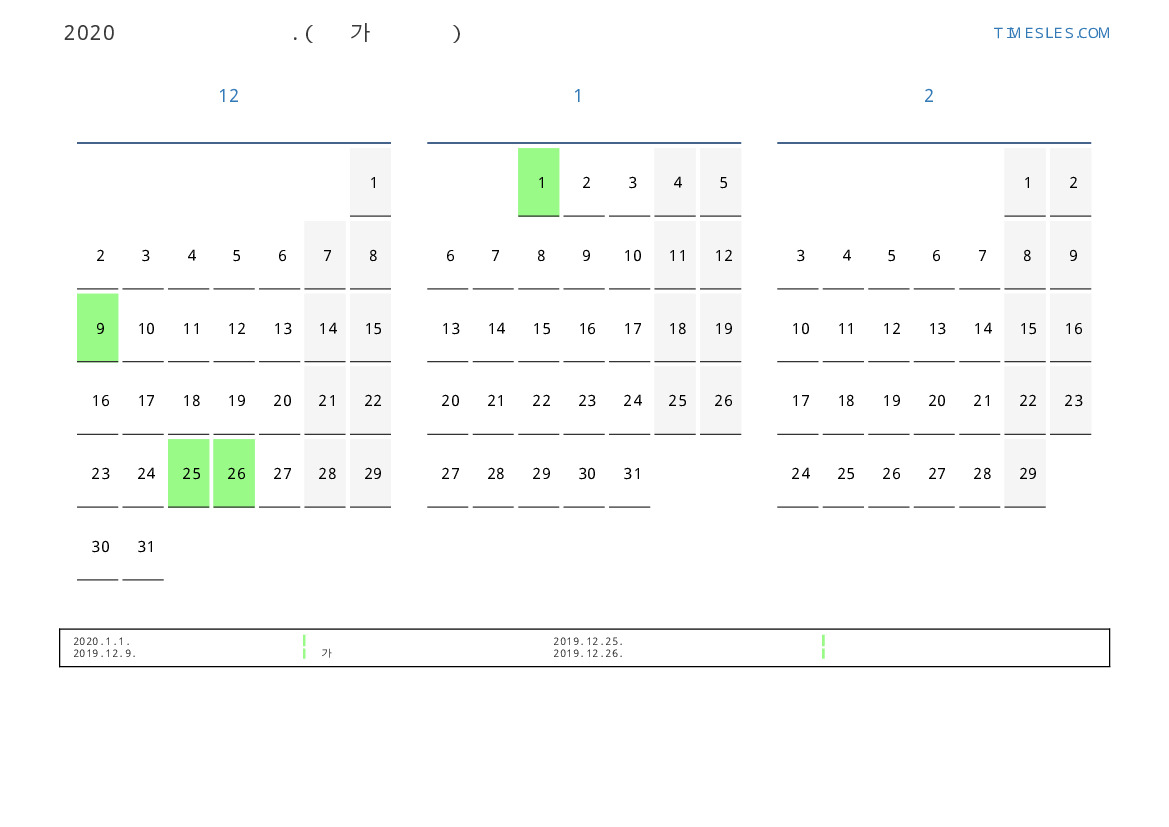 안티구아 및 바부 다 2020 년 겨울 동안 공휴일 및 주말이 포함 된 PDF 캘린더 다운로드 및 인쇄