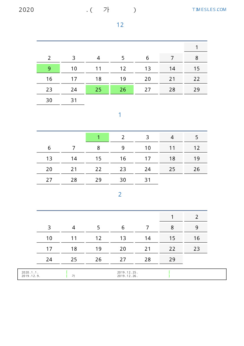 안티구아 및 바부 다 2020 년 겨울 동안 달력