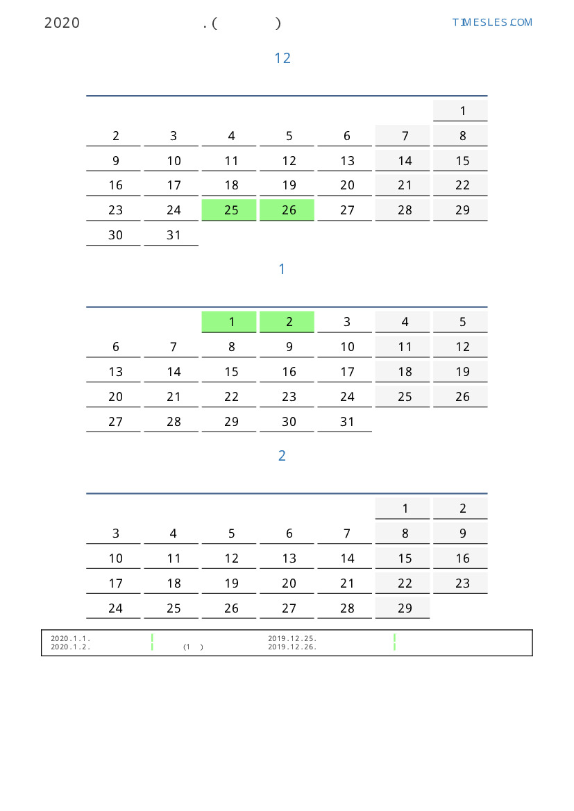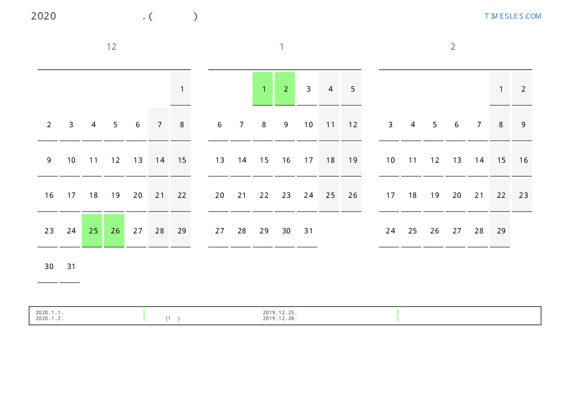 보츠와나 2020 년 겨울 동안 공휴일 및 주말이 포함 된 PDF 캘린더 다운로드 및 인쇄