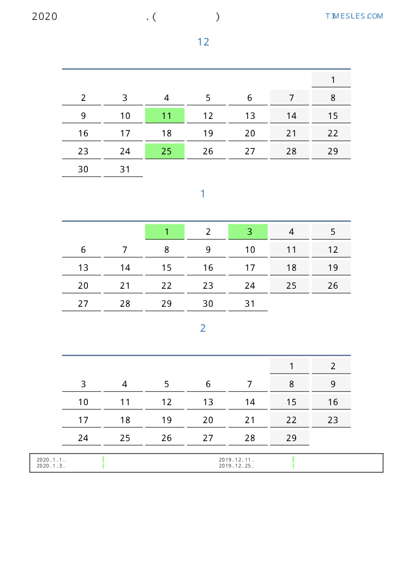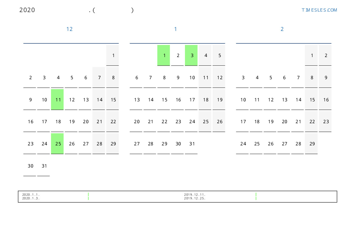 부르 키나 파소 2020 년 겨울 동안 공휴일 및 주말이 포함 된 PDF 캘린더 다운로드 및 인쇄