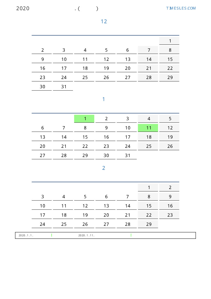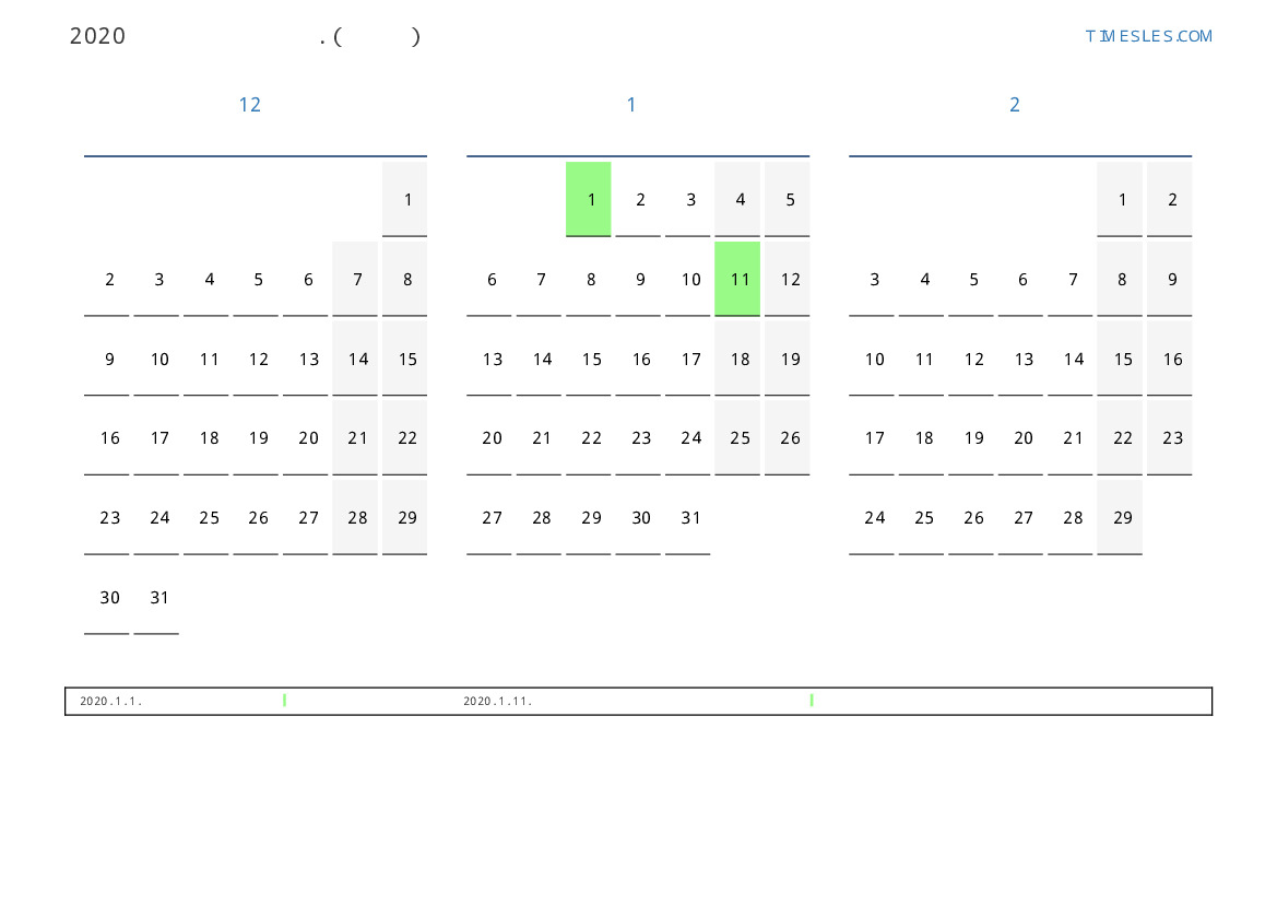 모로코 2020 년 겨울 동안 공휴일 및 주말이 포함 된 PDF 캘린더 다운로드 및 인쇄