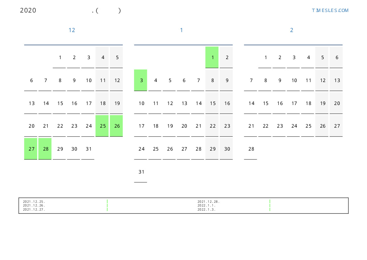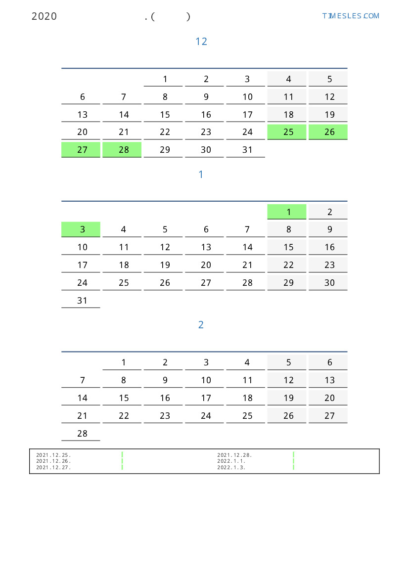 투발루 2022 년 겨울 동안 공휴일 및 주말이 포함 된 PDF 캘린더 다운로드 및 인쇄