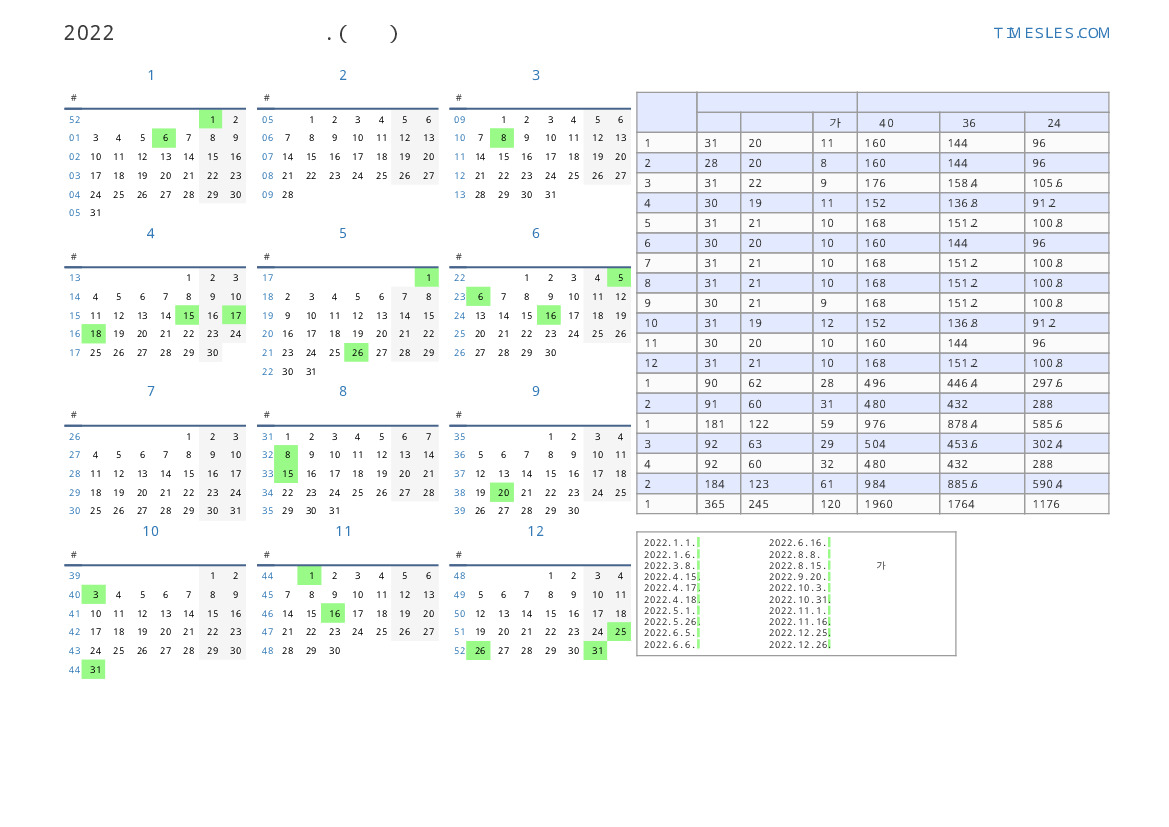 일하는 날 | 22 |