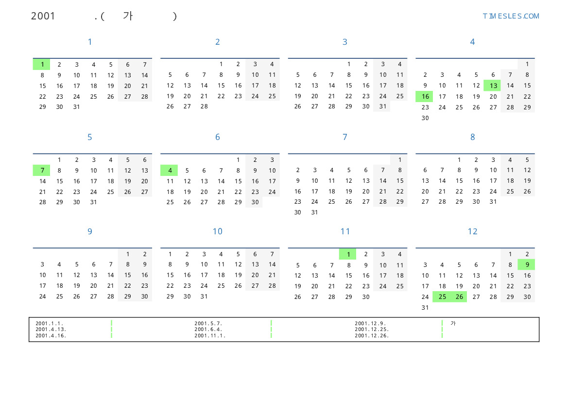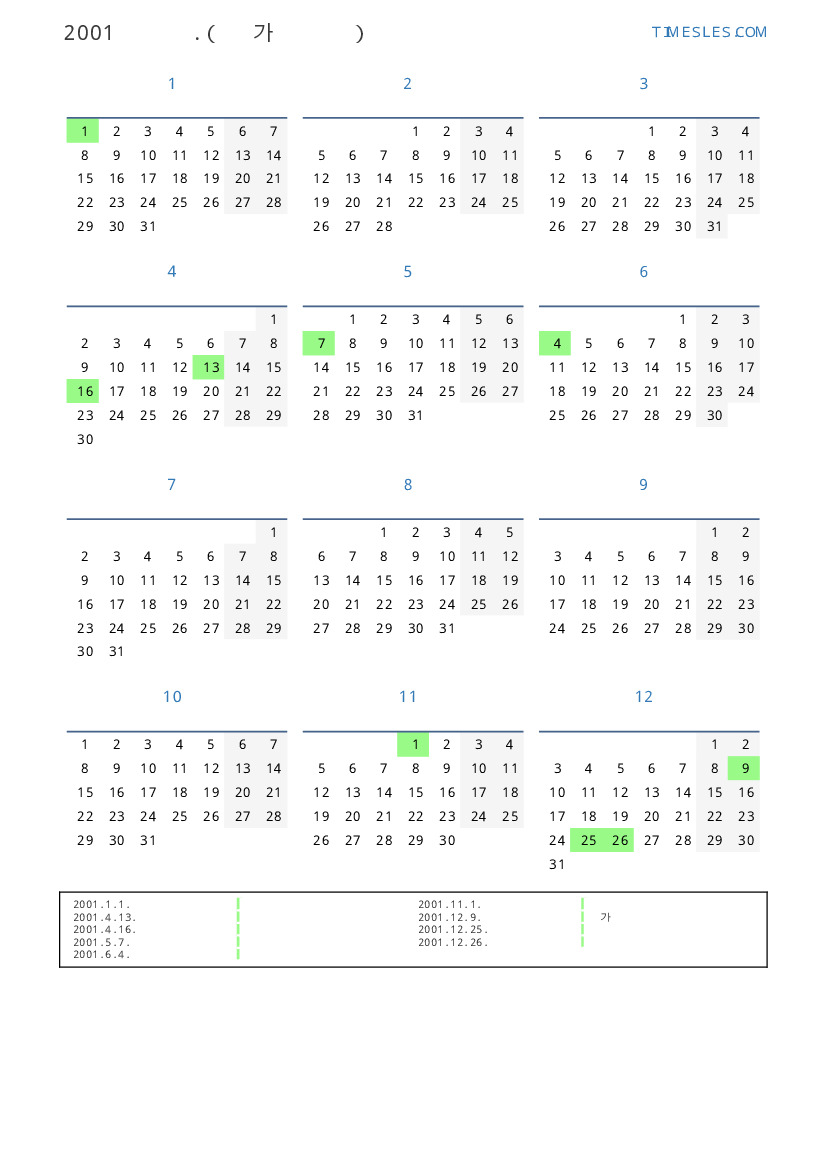 그레고리 안, 윤년이 아니다, 1 년에 365 일. 2001년 앤티가 바부 다 13 공휴일 및 휴무 있습니다. 중국 동부 달력에서 2001 년은 뱀의 해입니다. 연도는 월요일에 시작하여 월요일에 끝납니다.