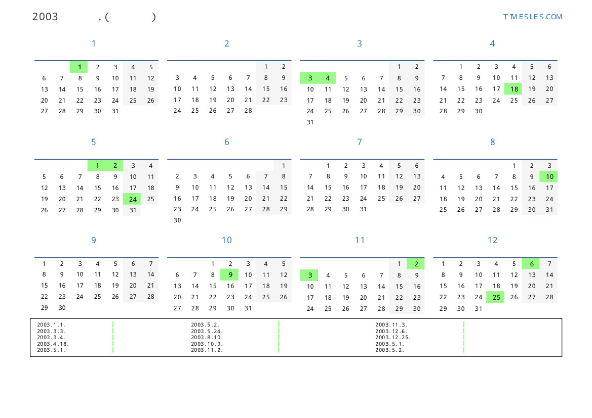 그레고리 안, 윤년이 아니다, 1 년에 365 일. 2003년 에콰도르 26 공휴일 및 휴무 있습니다. 중국 동부 달력에서 2003 년은 양의 해입니다. 연도는 수요일에 시작하여 수요일에 끝납니다.