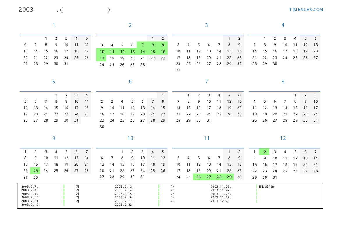 2003. 11. 30. Eid al-Fitr Holiday (공공 부문 만 해당)