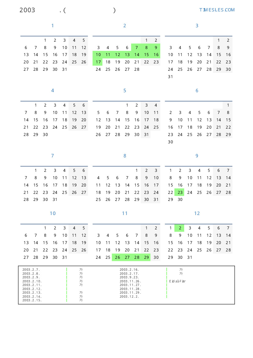 2003. 12. 1. Eid al-Fitr Holiday (공공 부문 만 해당)
