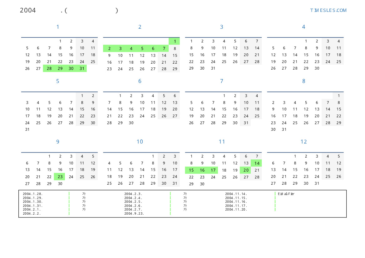2004. 11. 18. Eid al-Fitr Holiday (공공 부문 만 해당)