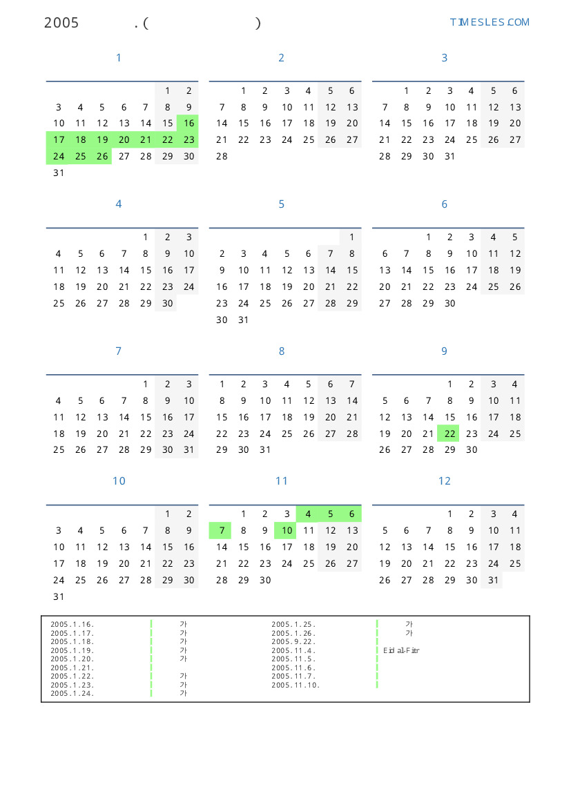 사우디 아라비아 의 2005 년 공휴일 및 주말 달력