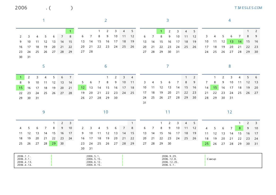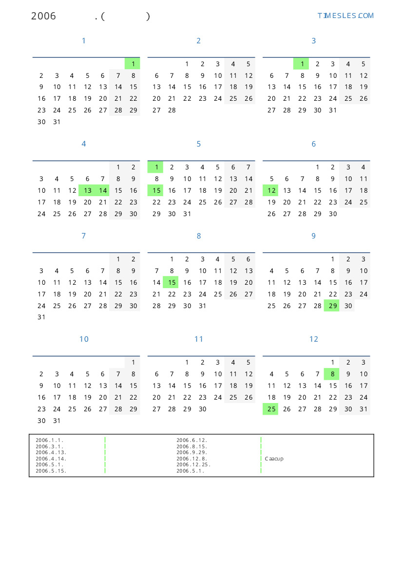 그레고리 안, 윤년이 아니다, 1 년에 365 일. 2006년 파라과이 18 공휴일 및 휴무 있습니다. 중국 동부 달력에서 2006 년은 개 년입니다. 연도는 일요일에 시작하여 일요일에 끝납니다.