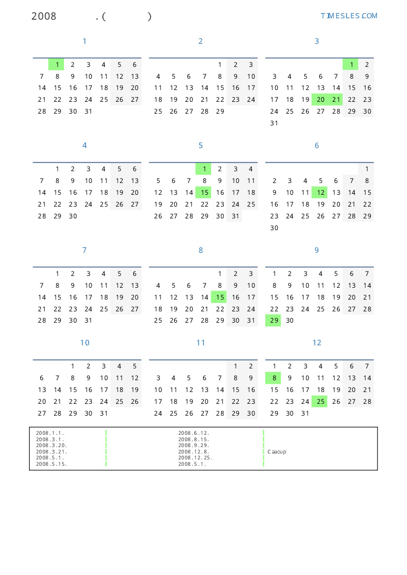 그레고리 안, 윤년, 1 년에 366 일. 2008년 파라과이 18 공휴일 및 휴무 있습니다. 중국 동부 달력에서 2008 년은 쥐의 해입니다. 연도는 화요일에 시작하여 수요일에 끝납니다.