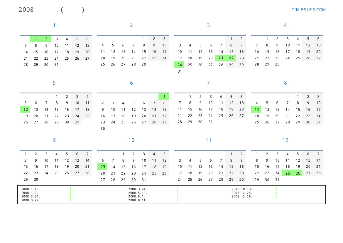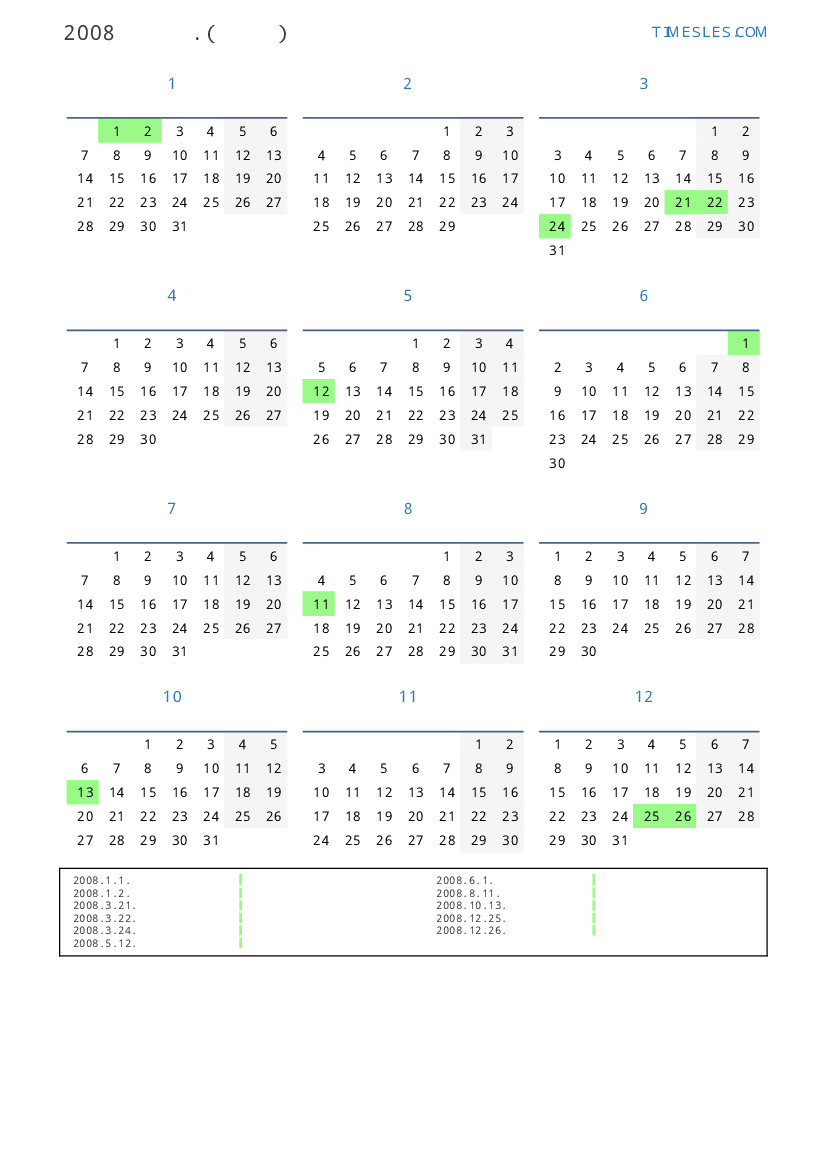 그레고리 안, 윤년, 1 년에 366 일. 2008년 사모아 15 공휴일 및 휴무 있습니다. 중국 동부 달력에서 2008 년은 쥐의 해입니다. 연도는 화요일에 시작하여 수요일에 끝납니다.