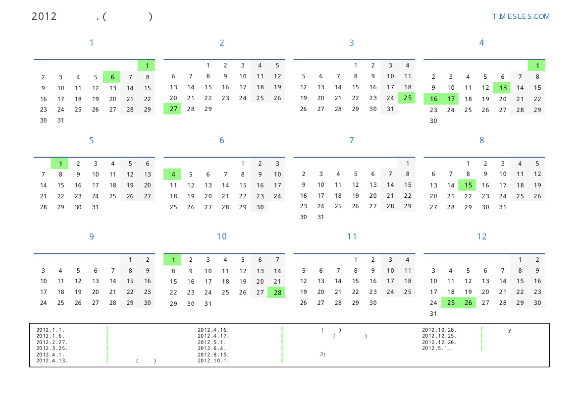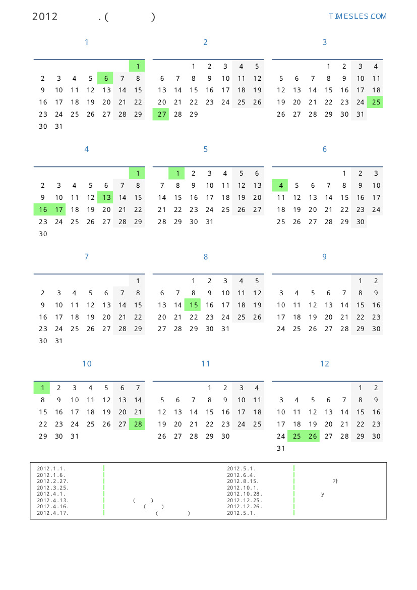 그레고리 안, 윤년, 1 년에 366 일. 2012년 키프로스 26 공휴일 및 휴무 있습니다. 중국 동부 달력에서 2012 년은 용의 해입니다. 연도는 일요일에 시작하여 월요일에 끝납니다.