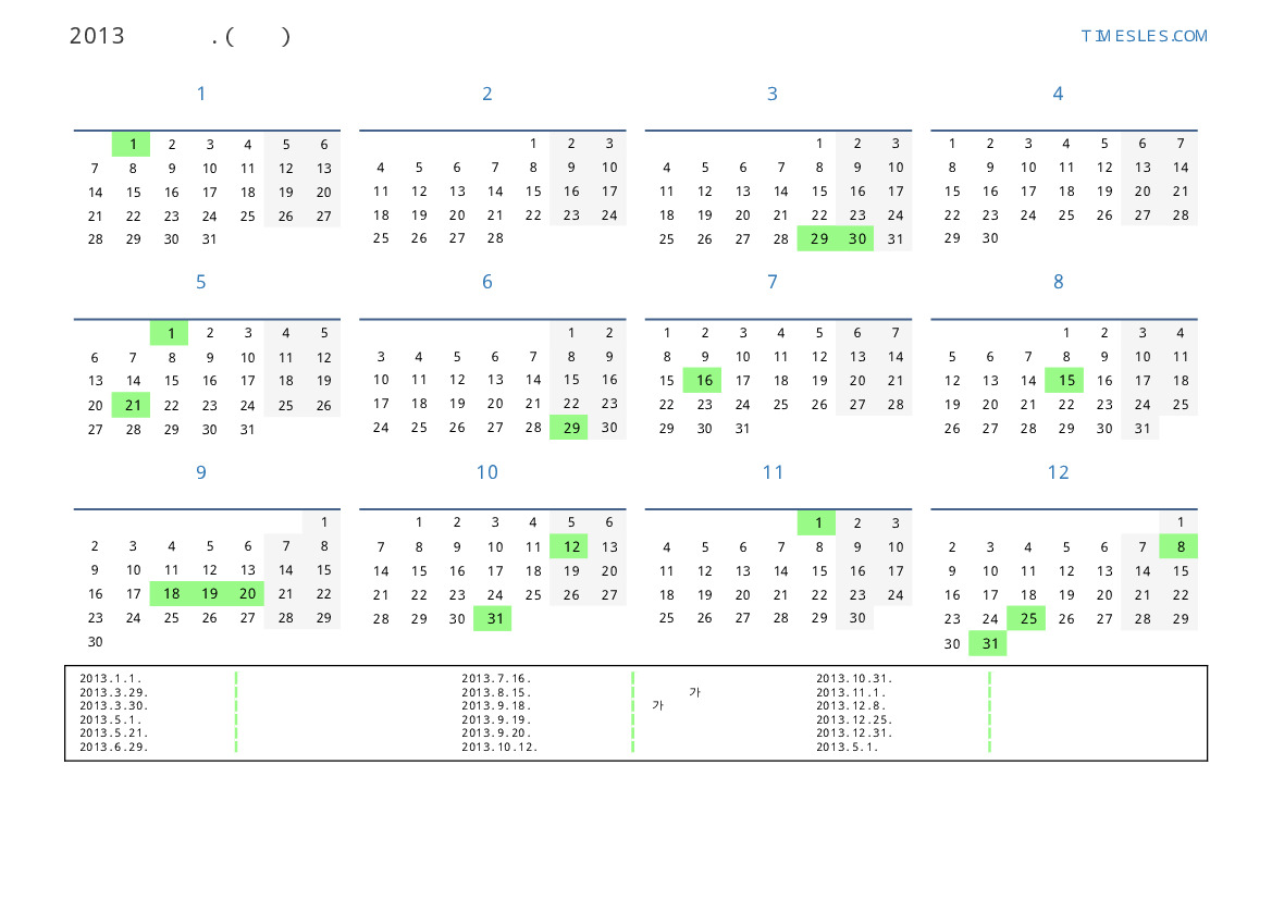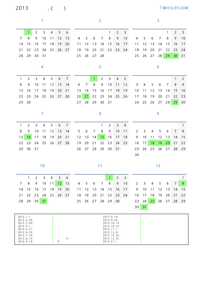 2013. 9. 20. 연장 공휴일