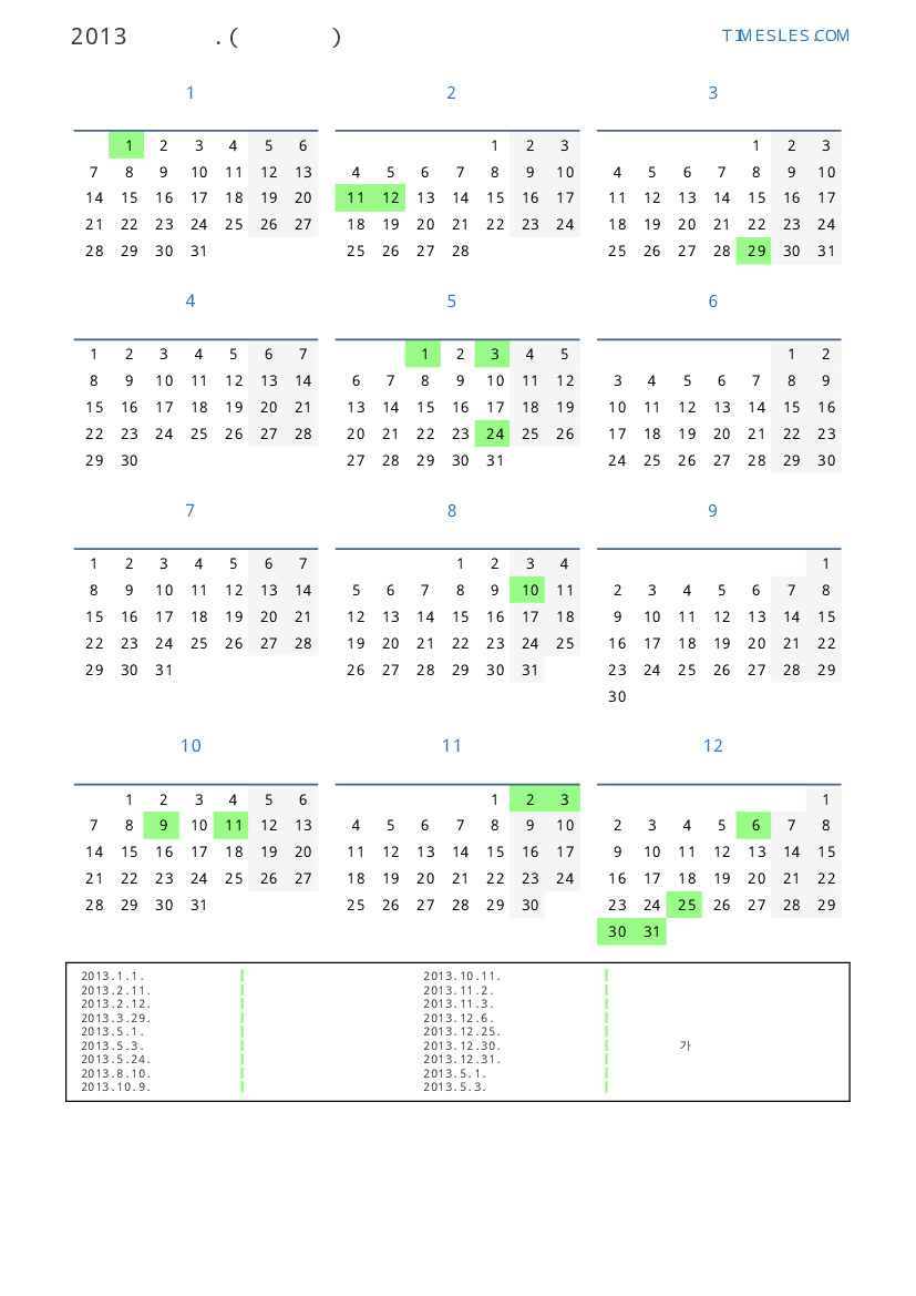 2013. 12. 30. 새해 전야 추가 휴일