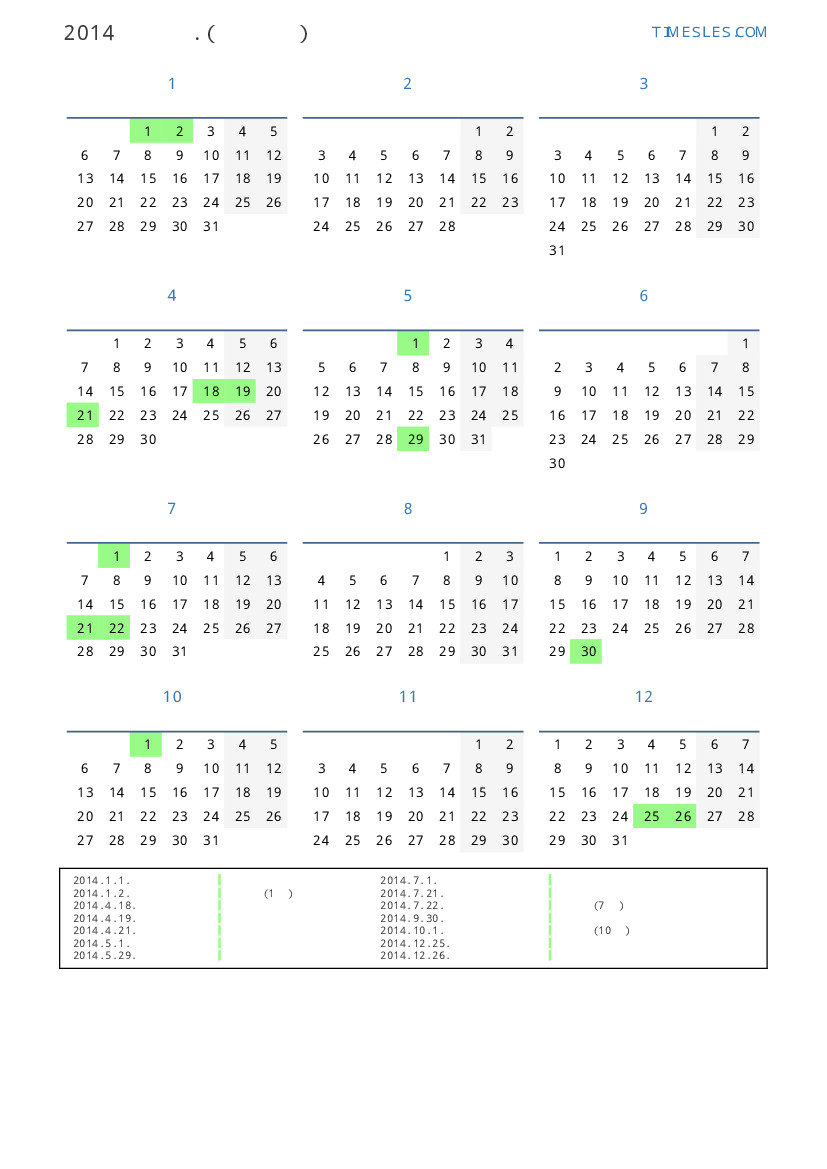2014. 1. 2. 공휴일 (1 월)