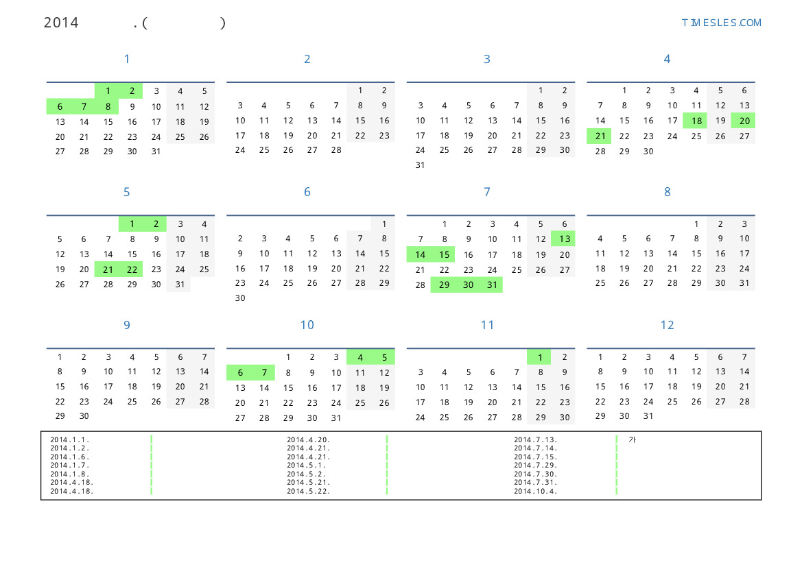그레고리 안, 윤년이 아니다, 1 년에 365 일. 2014년 몬테네그로 33 공휴일 및 휴무 있습니다. 중국 동부 달력에서 2014 년은 말의 해입니다. 연도는 수요일에 시작하여 수요일에 끝납니다.