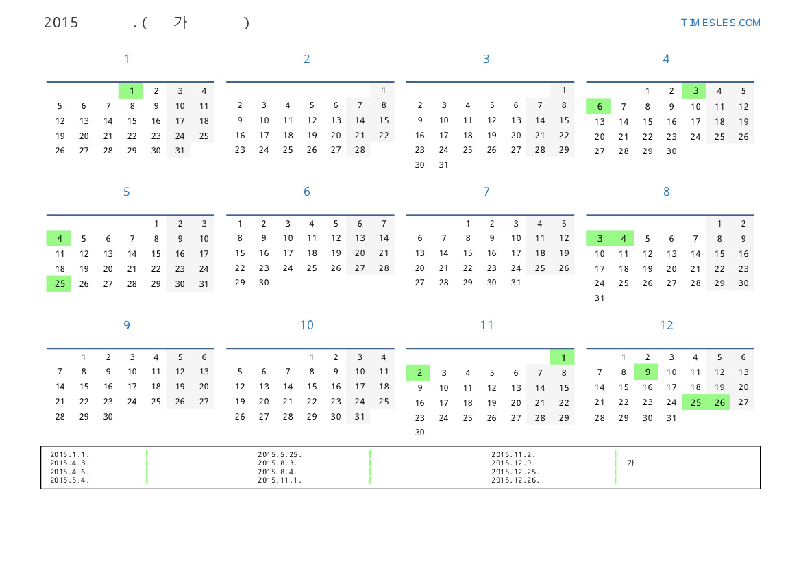 안티구아 및 바부 다 2015 년 공휴일 및 주말이 포함 된 PDF 캘린더 다운로드 및 인쇄