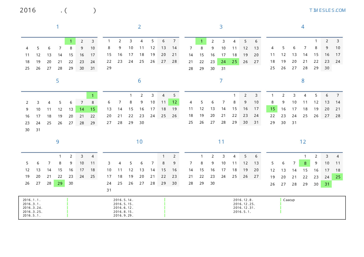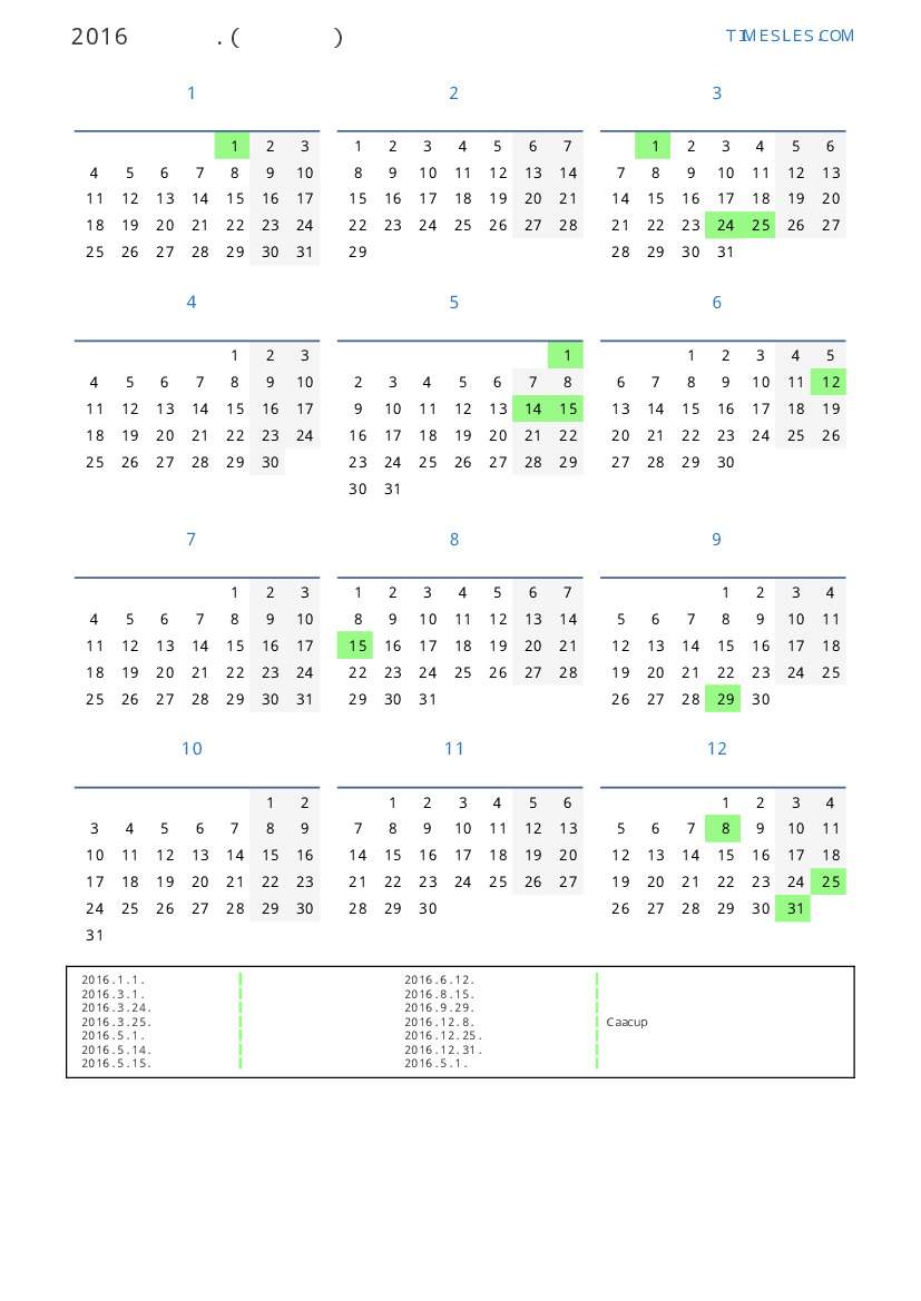그레고리 안, 윤년, 1 년에 366 일. 2016년 파라과이 21 공휴일 및 휴무 있습니다. 중국 동부 달력에서 2016 년은 원숭이의 해입니다. 연도는 금요일에 시작하여 토요일에 끝납니다.