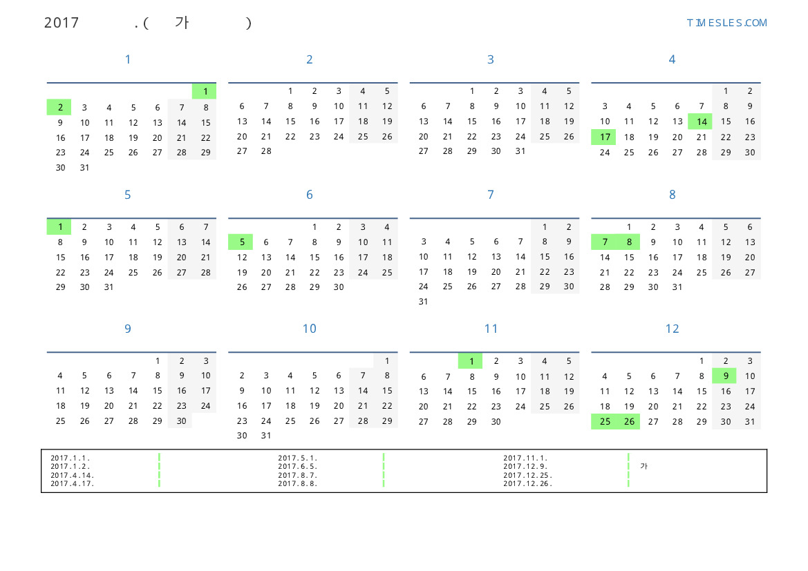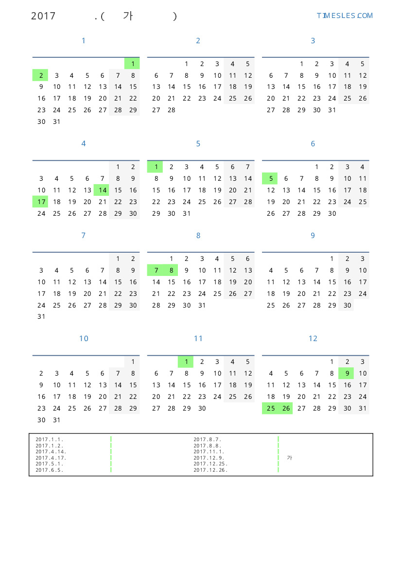 휴일 풍경 달력