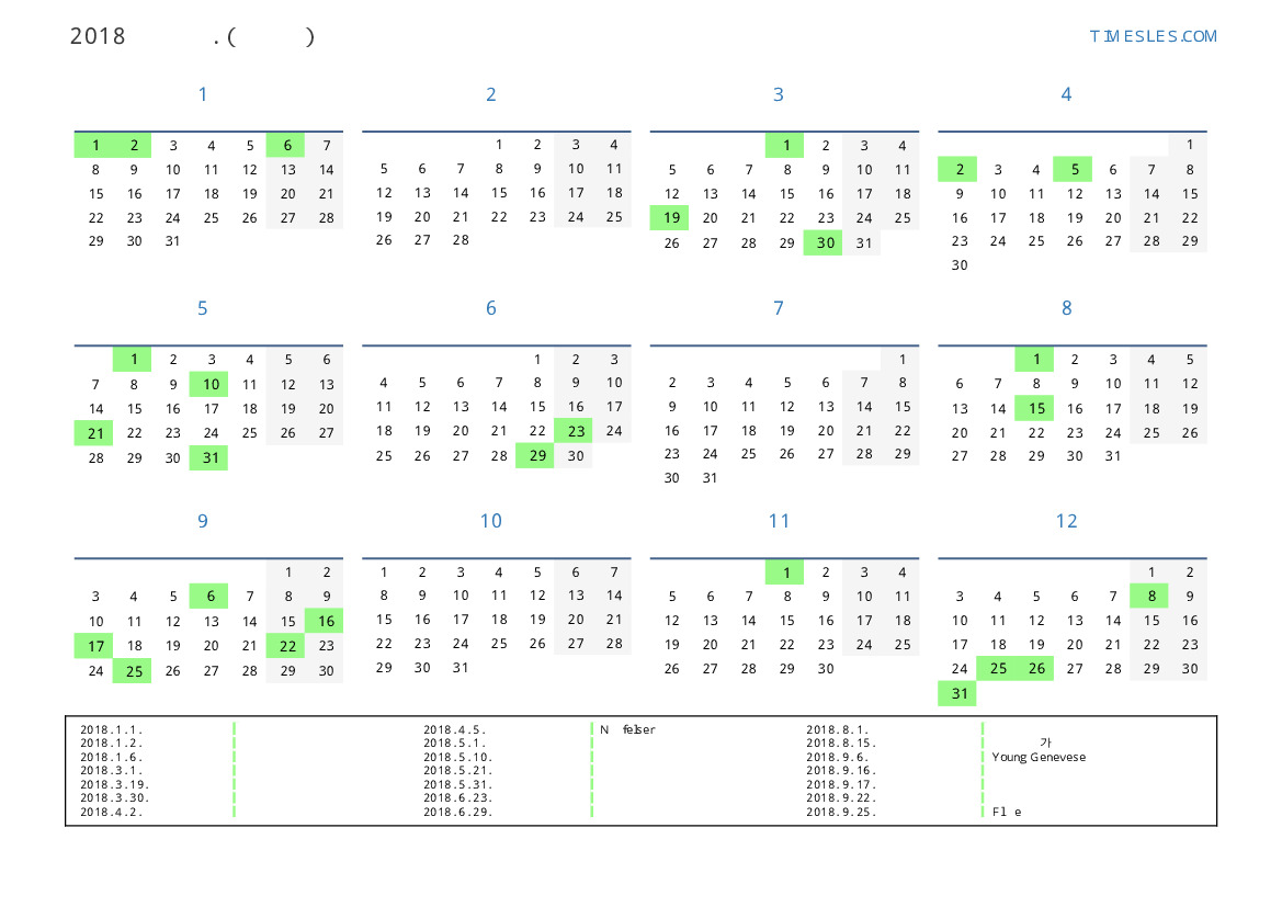 그레고리 안, 윤년이 아니다, 1 년에 365 일. 2018년 스위스에서 41 공휴일 및 휴무 있습니다. 중국 동부 달력에서 2018 년은 개 년입니다. 연도는 월요일에 시작하여 월요일에 끝납니다.
