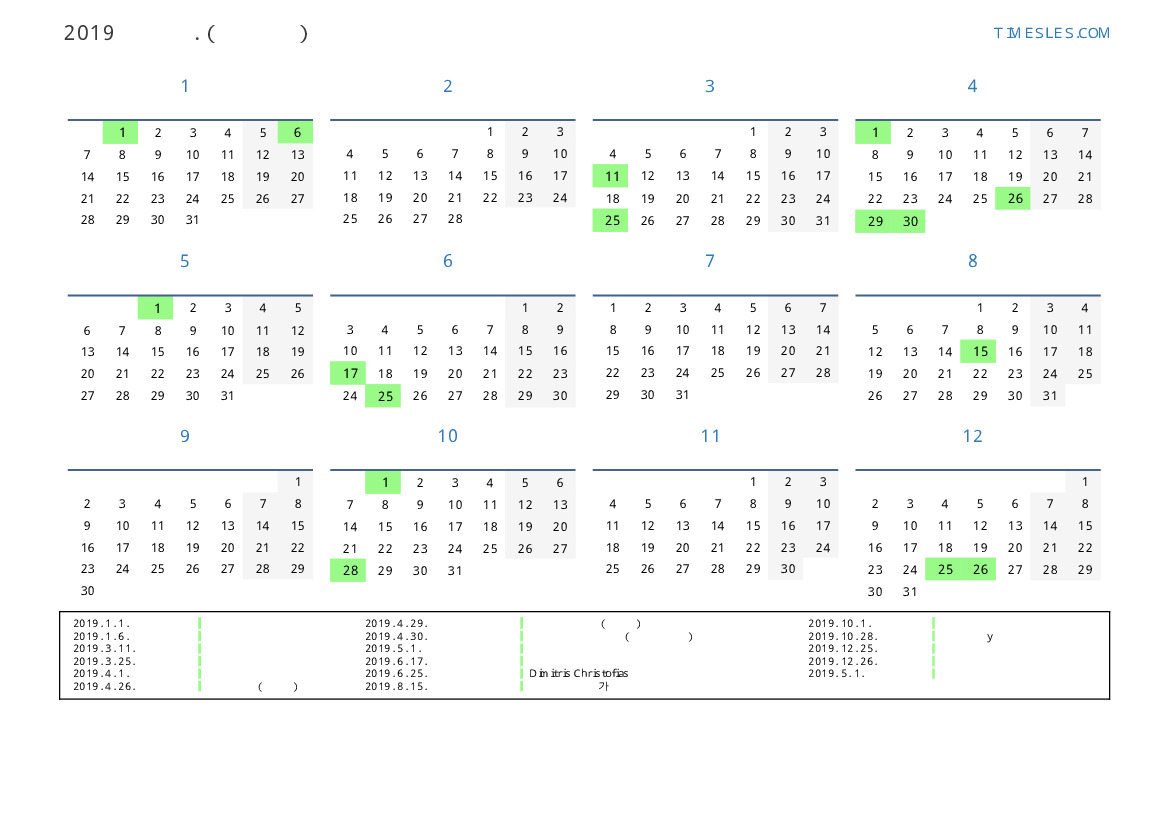 키프로스 의 2019 년 공휴일 및 주말 달력