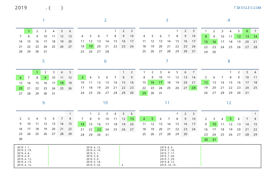 그레고리 안, 윤년이 아니다, 1 년에 365 일. 2019년 태국에서 44 공휴일 및 휴무 있습니다. 중국 동부 달력에서 2019 년은 돼지의 해입니다. 연도는 화요일에 시작하여 화요일에 끝납니다.