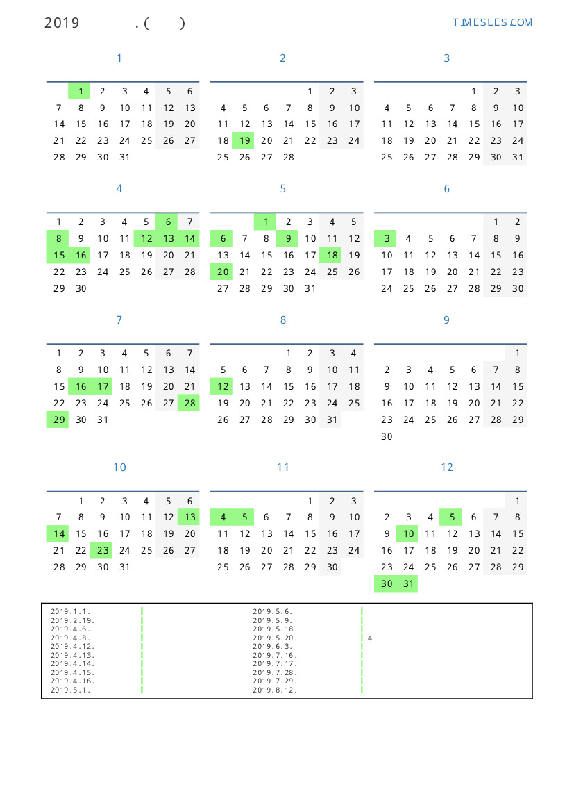 2019. 12. 30. 새해 특별 공휴일