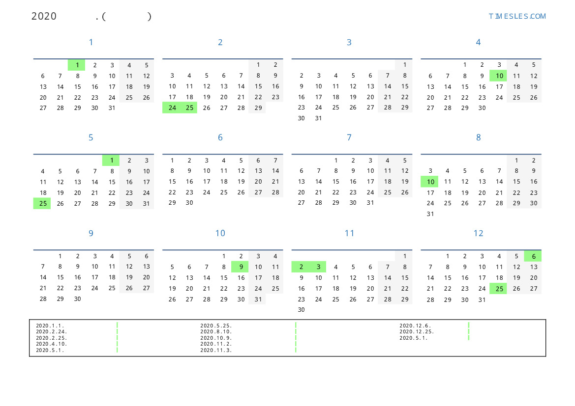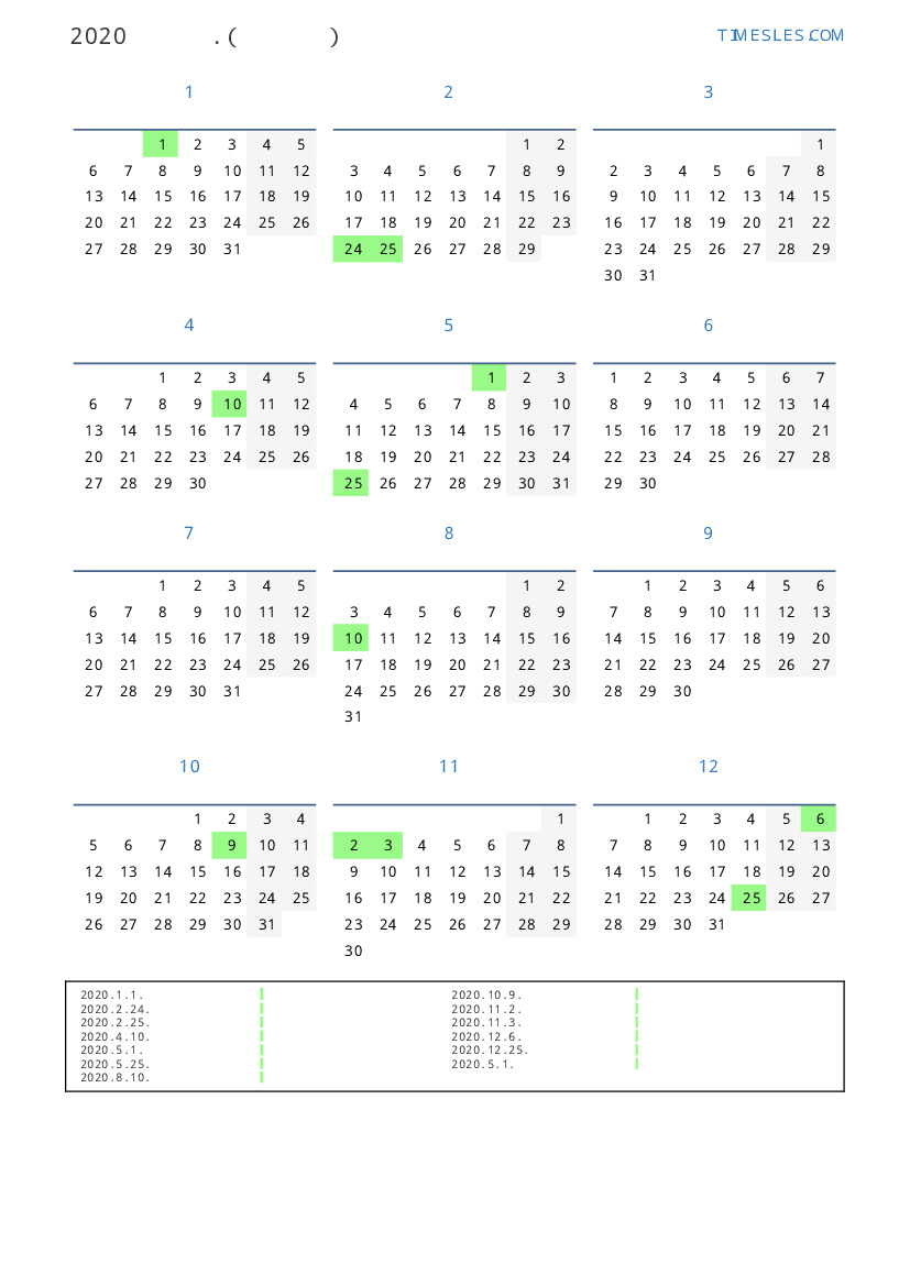 그레고리 안, 윤년, 1 년에 366 일. 2020년 에콰도르 22 공휴일 및 휴무 있습니다. 중국 동부 달력에서 2020 년은 쥐의 해입니다. 연도는 수요일에 시작하여 목요일에 끝납니다.