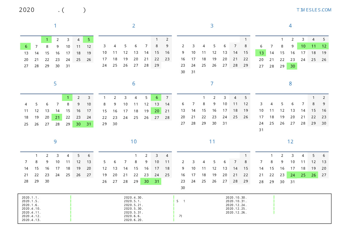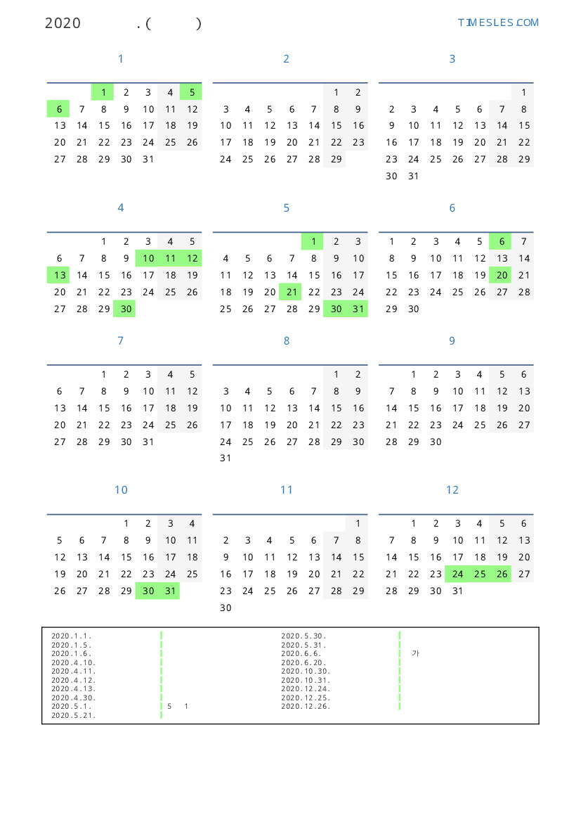 그레고리 안, 윤년, 1 년에 366 일. 2020년 스웨덴 34 공휴일 및 휴무 있습니다. 중국 동부 달력에서 2020 년은 쥐의 해입니다. 연도는 수요일에 시작하여 목요일에 끝납니다.