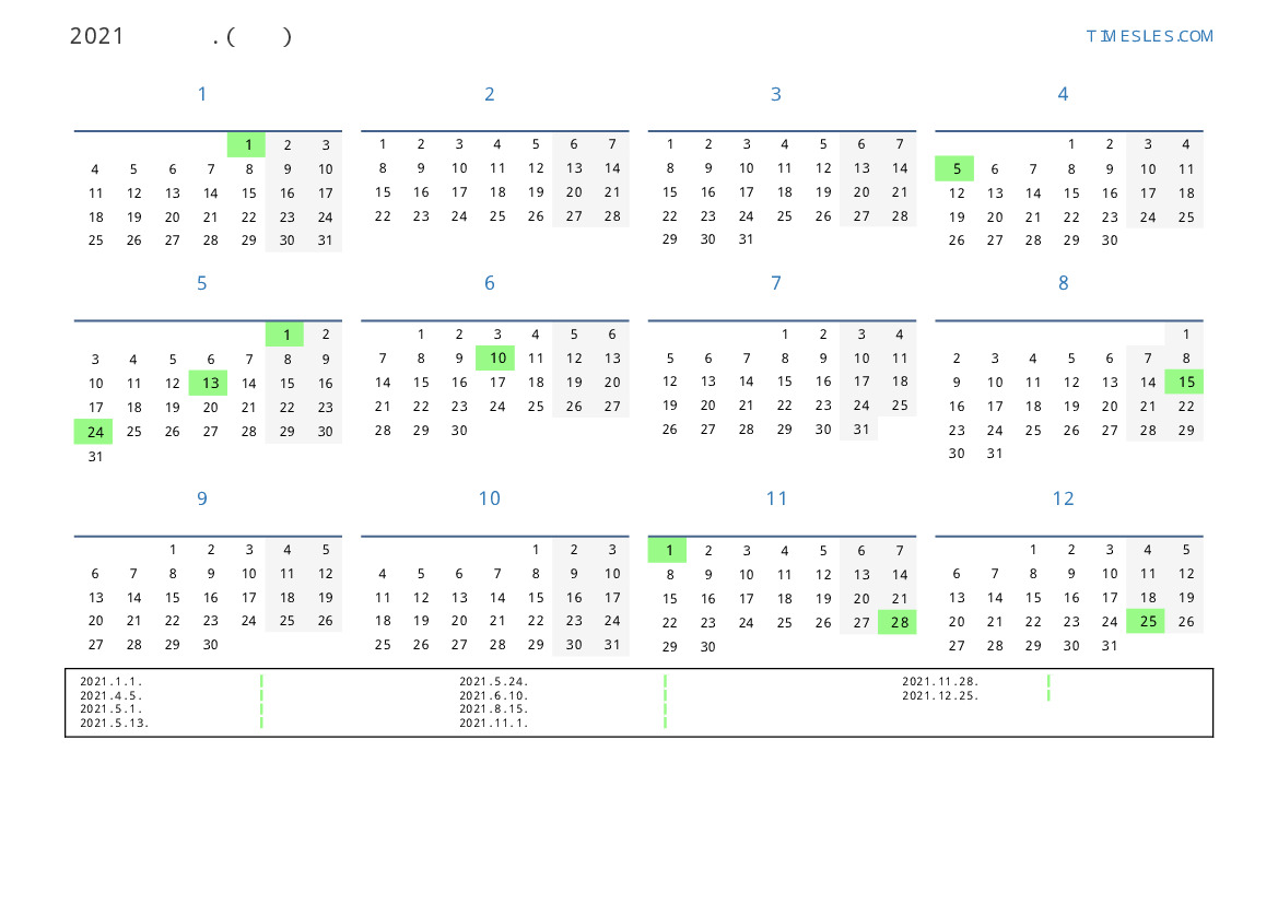 그레고리 안, 윤년이 아니다, 1 년에 365 일. 2021년 콩고 17 공휴일 및 휴무 있습니다. 중국 동부 달력에서 2021 년은 황소의 해입니다. 연도는 금요일에 시작하여 금요일에 끝납니다.