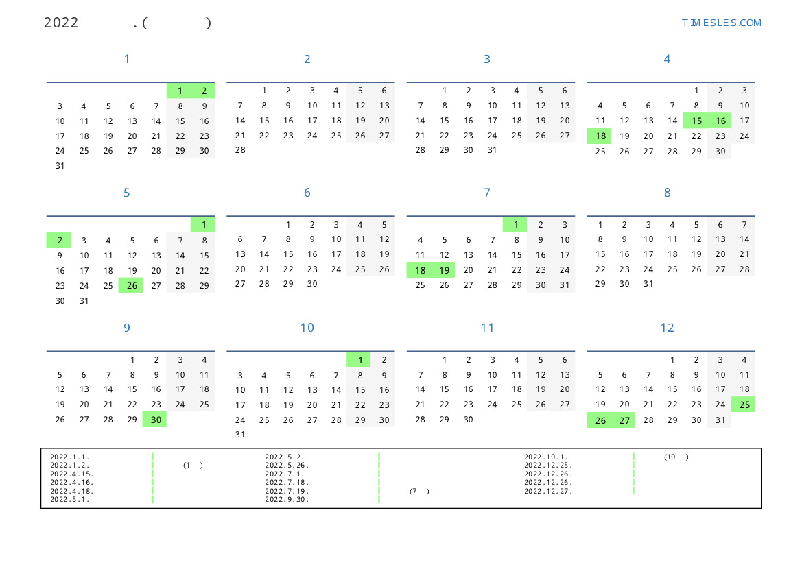 그레고리 안, 윤년이 아니다, 1 년에 365 일. 2022년 보츠와나 23 공휴일 및 휴무 있습니다. 중국 동부 달력에서 2022 년은 호랑이의 해입니다. 연도는 토요일에 시작하여 토요일에 끝납니다.