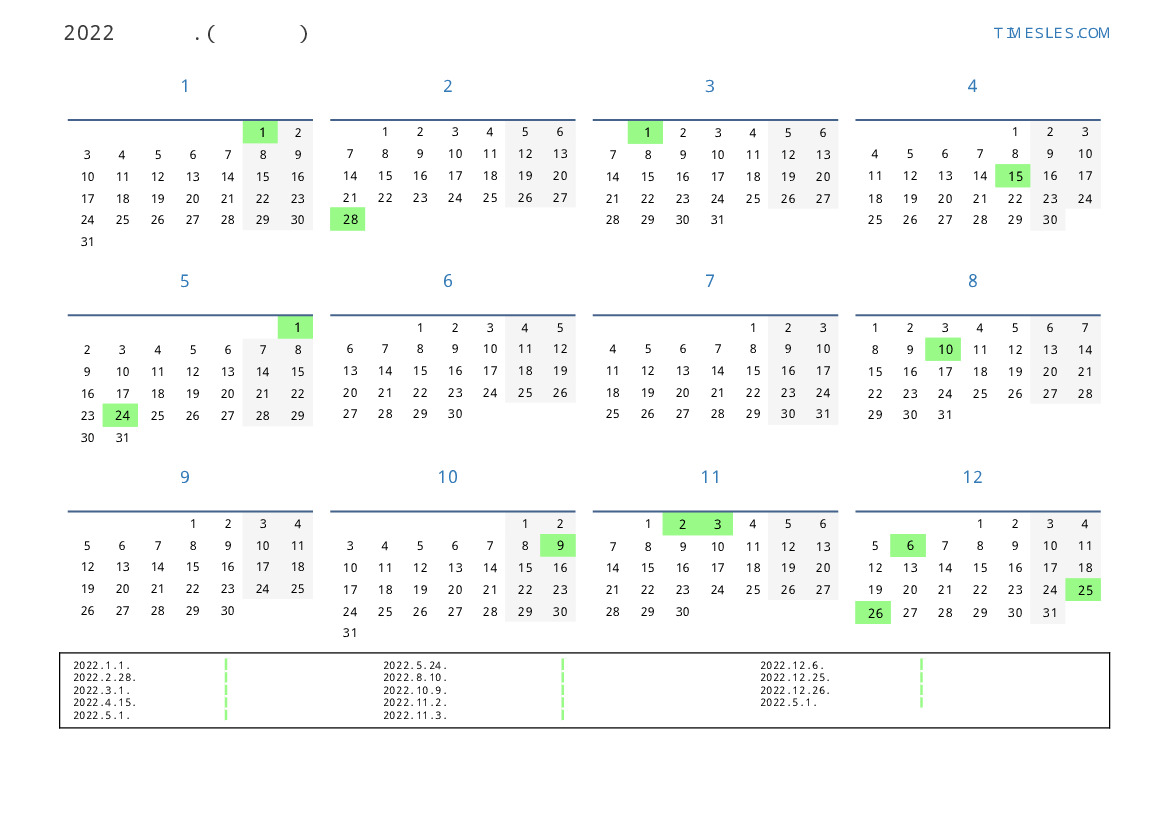그레고리 안, 윤년이 아니다, 1 년에 365 일. 2022년 에콰도르 23 공휴일 및 휴무 있습니다. 중국 동부 달력에서 2022 년은 호랑이의 해입니다. 연도는 토요일에 시작하여 토요일에 끝납니다.