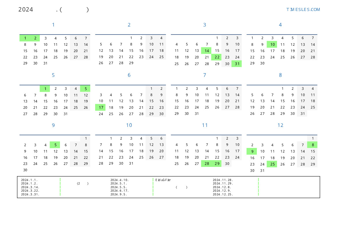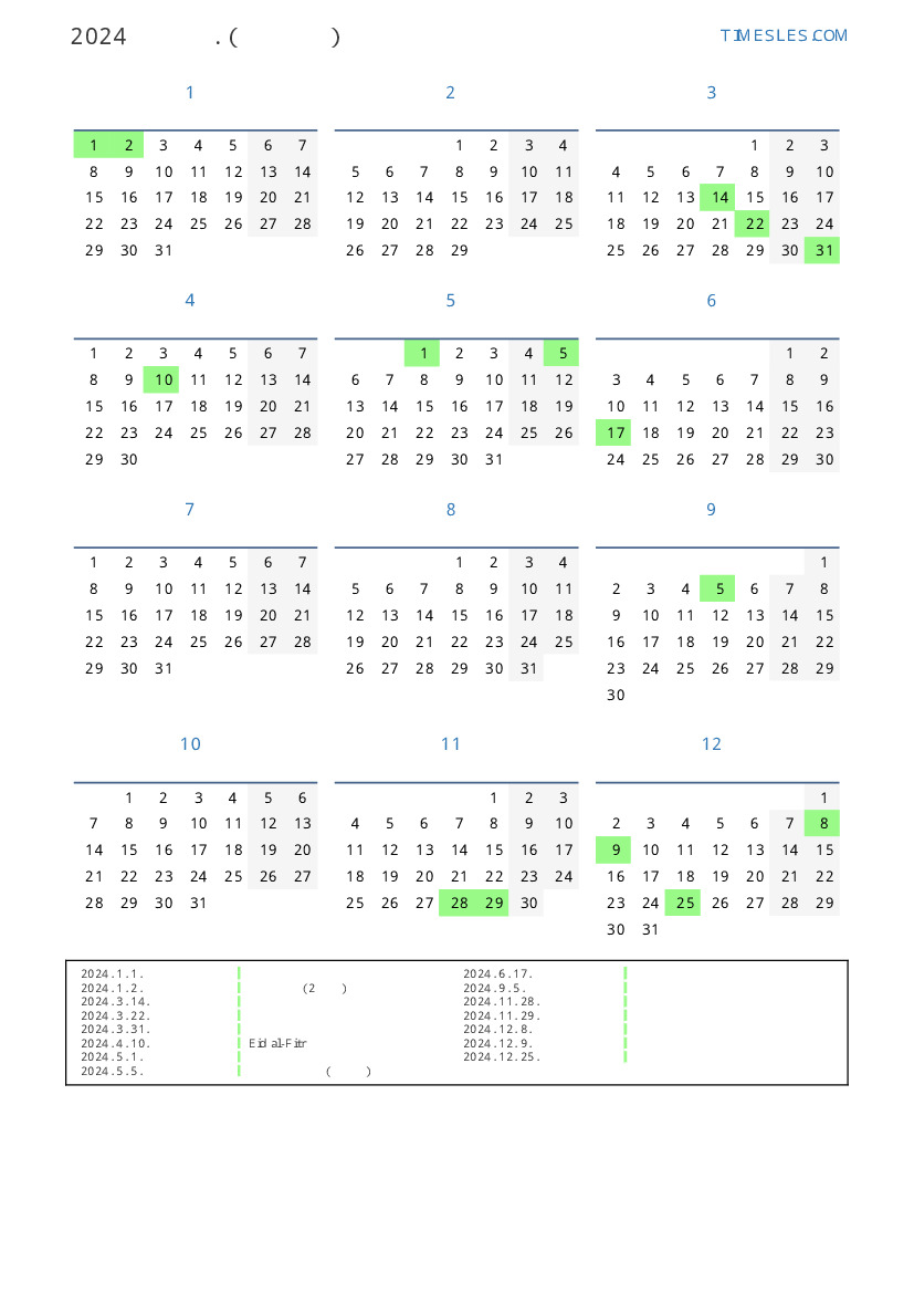 알바니아 의 2024 년 공휴일 및 주말 달력
