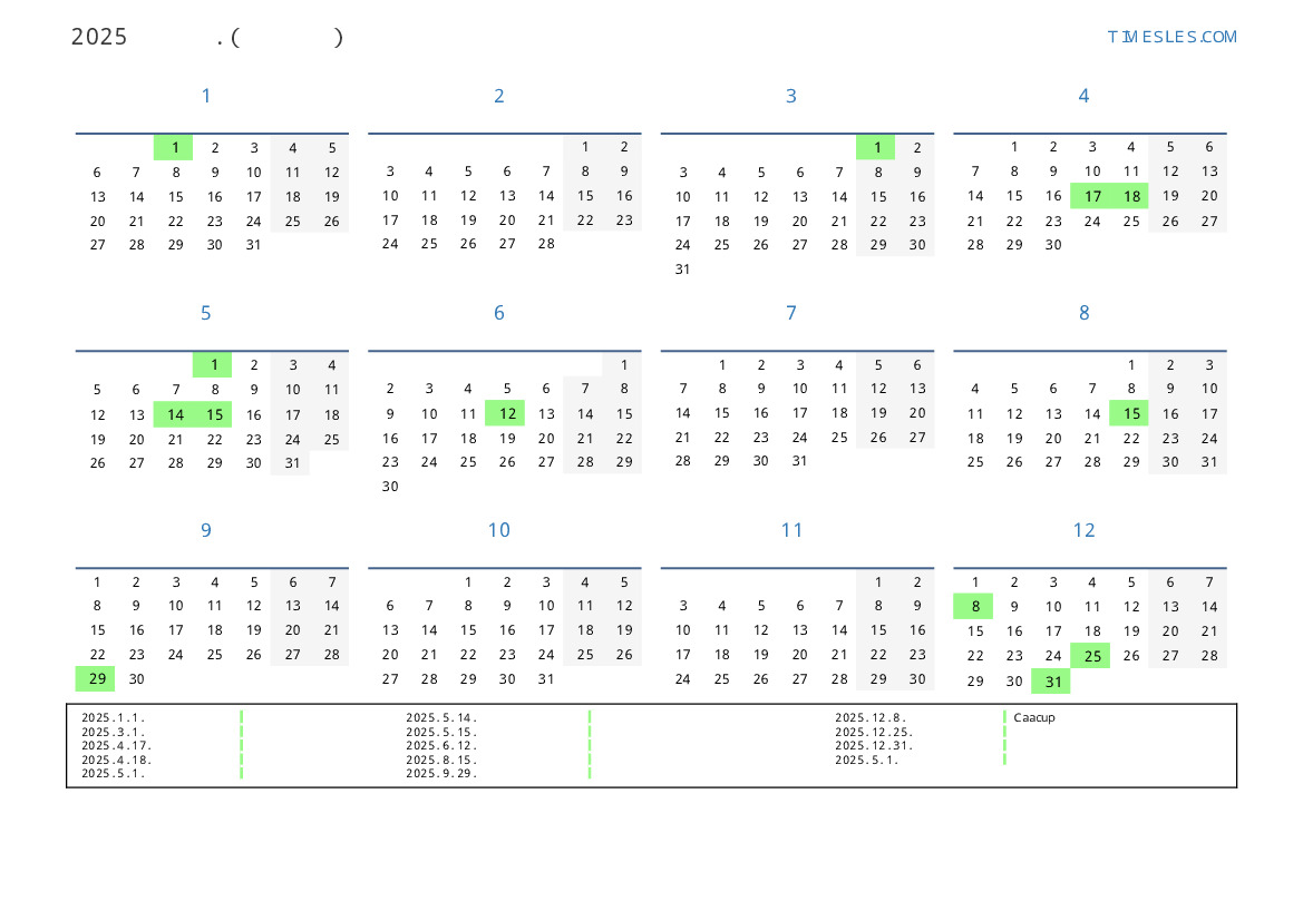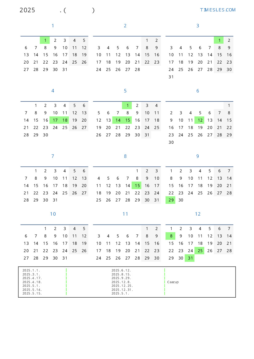 그레고리 안, 윤년이 아니다, 1 년에 365 일. 2025년 파라과이 21 공휴일 및 휴무 있습니다. 중국 동부 달력에서 2025 년은 뱀의 해입니다. 연도는 수요일에 시작하여 수요일에 끝납니다.