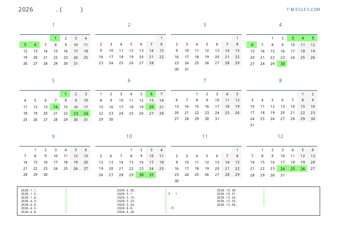 그레고리 안, 윤년이 아니다, 1 년에 365 일. 2026년 스웨덴 34 공휴일 및 휴무 있습니다. 중국 동부 달력에서 2026 년은 말의 해입니다. 연도는 목요일에 시작하여 목요일에 끝납니다.