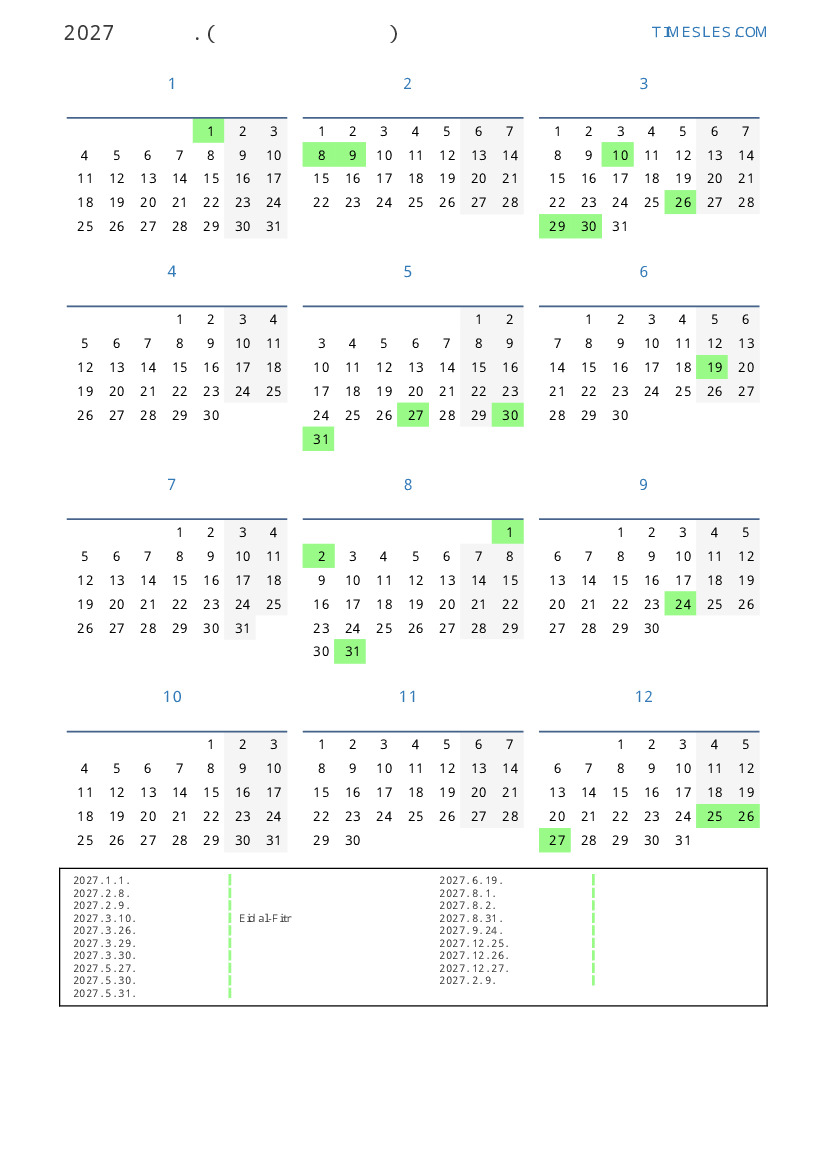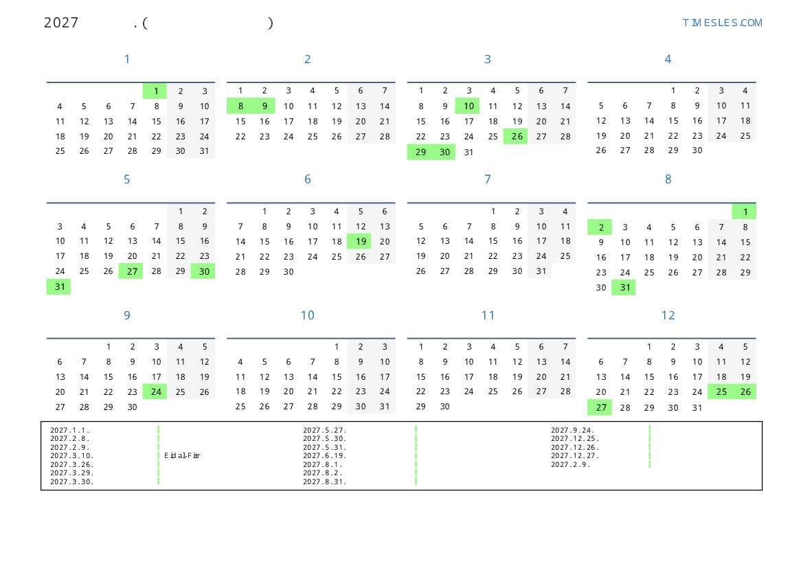 그레고리 안, 윤년이 아니다, 1 년에 365 일. 2027년 트리니다드 토바고 29 공휴일 및 휴무 있습니다. 중국 동부 달력에서 2027 년은 양의 해입니다. 연도는 금요일에 시작하여 금요일에 끝납니다.