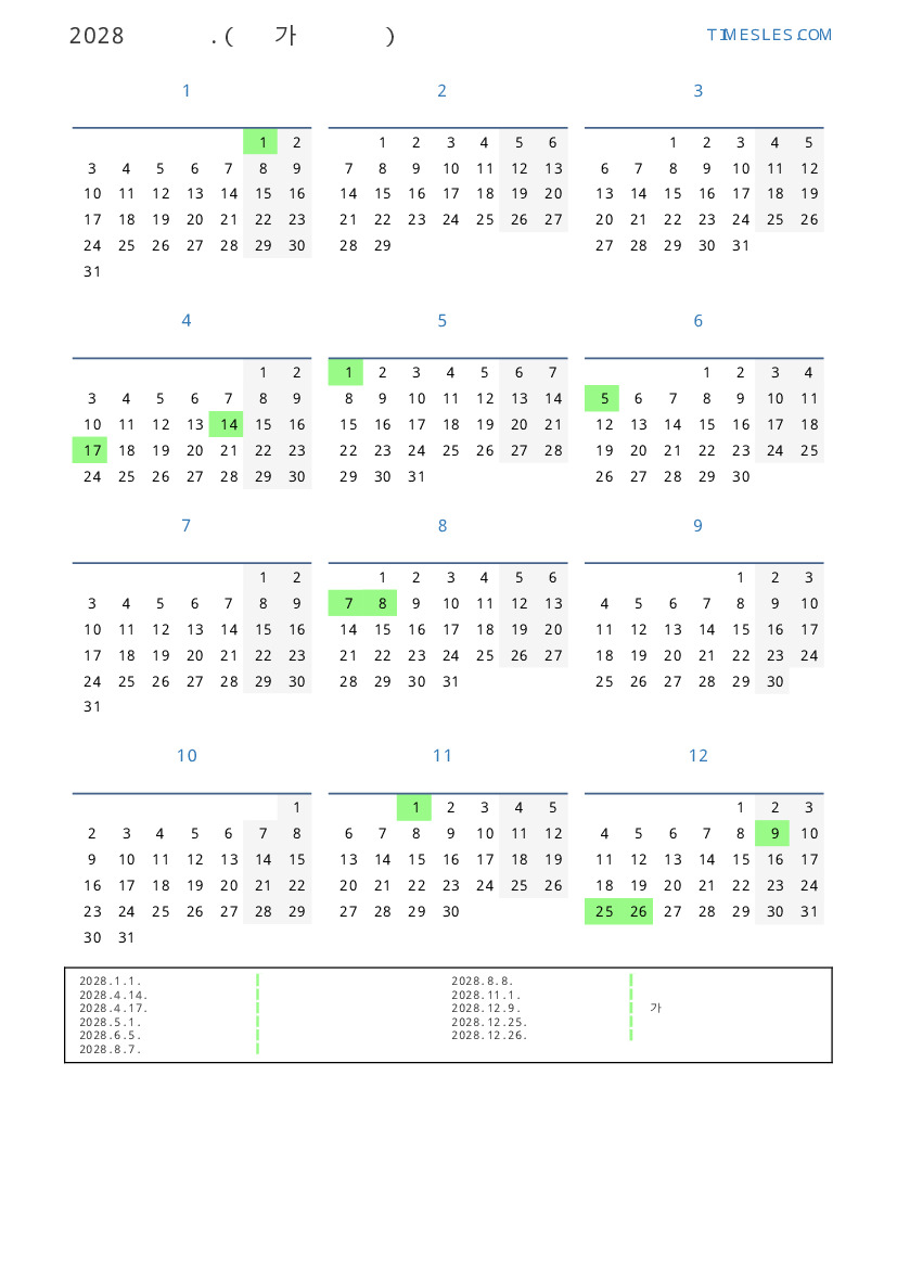 그레고리 안, 윤년, 1 년에 366 일. 2028년 앤티가 바부 다 15 공휴일 및 휴무 있습니다. 중국 동부 달력에서 2028 년은 원숭이의 해입니다. 연도는 토요일에 시작하여 일요일에 끝납니다.