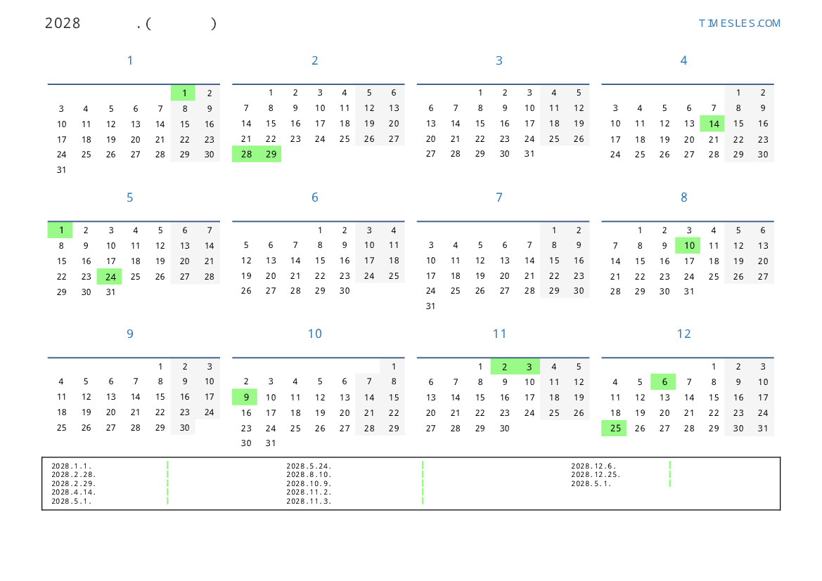 그레고리 안, 윤년, 1 년에 366 일. 2028년 에콰도르 22 공휴일 및 휴무 있습니다. 중국 동부 달력에서 2028 년은 원숭이의 해입니다. 연도는 토요일에 시작하여 일요일에 끝납니다.
