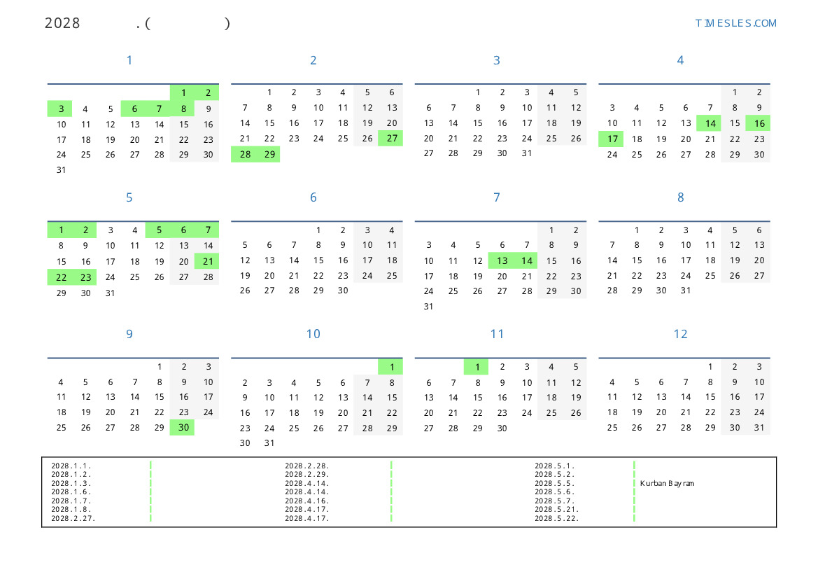 그레고리 안, 윤년, 1 년에 366 일. 2028년 몬테네그로 34 공휴일 및 휴무 있습니다. 중국 동부 달력에서 2028 년은 원숭이의 해입니다. 연도는 토요일에 시작하여 일요일에 끝납니다.